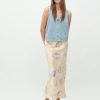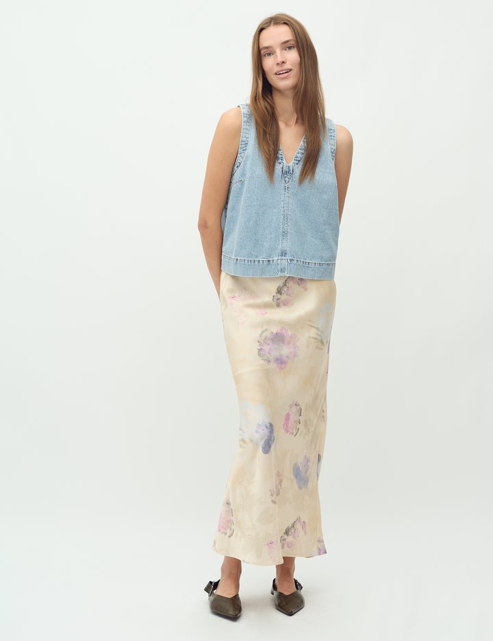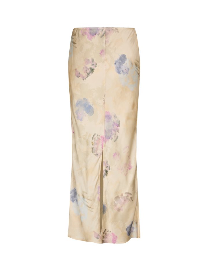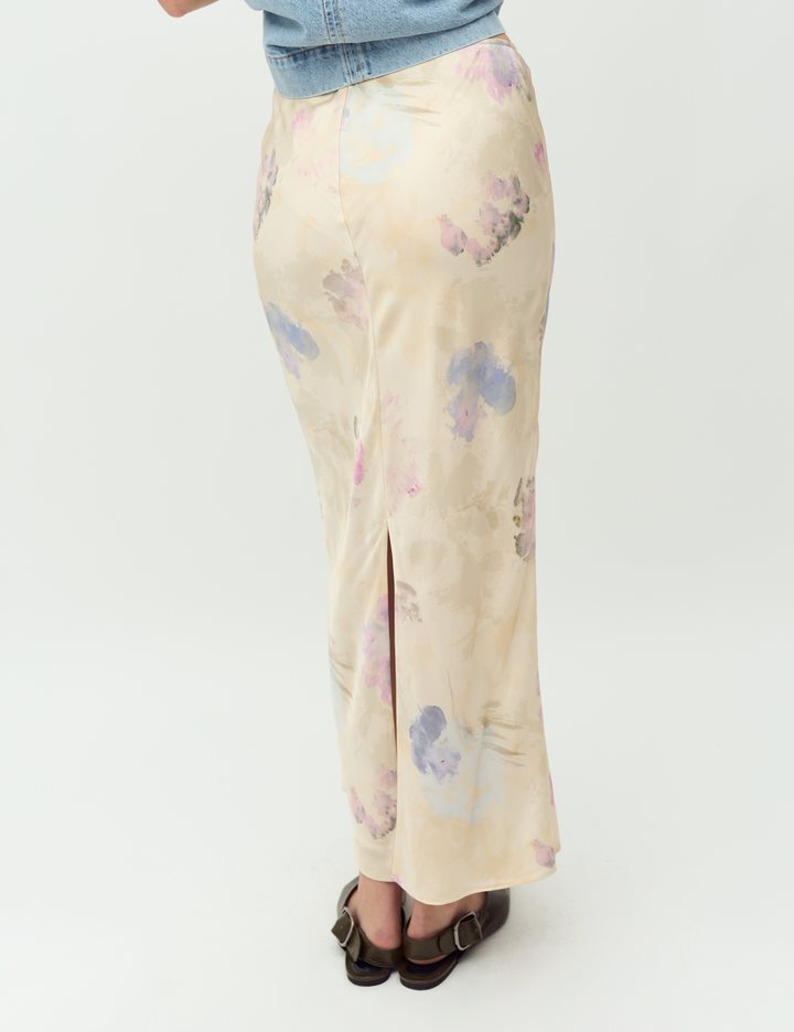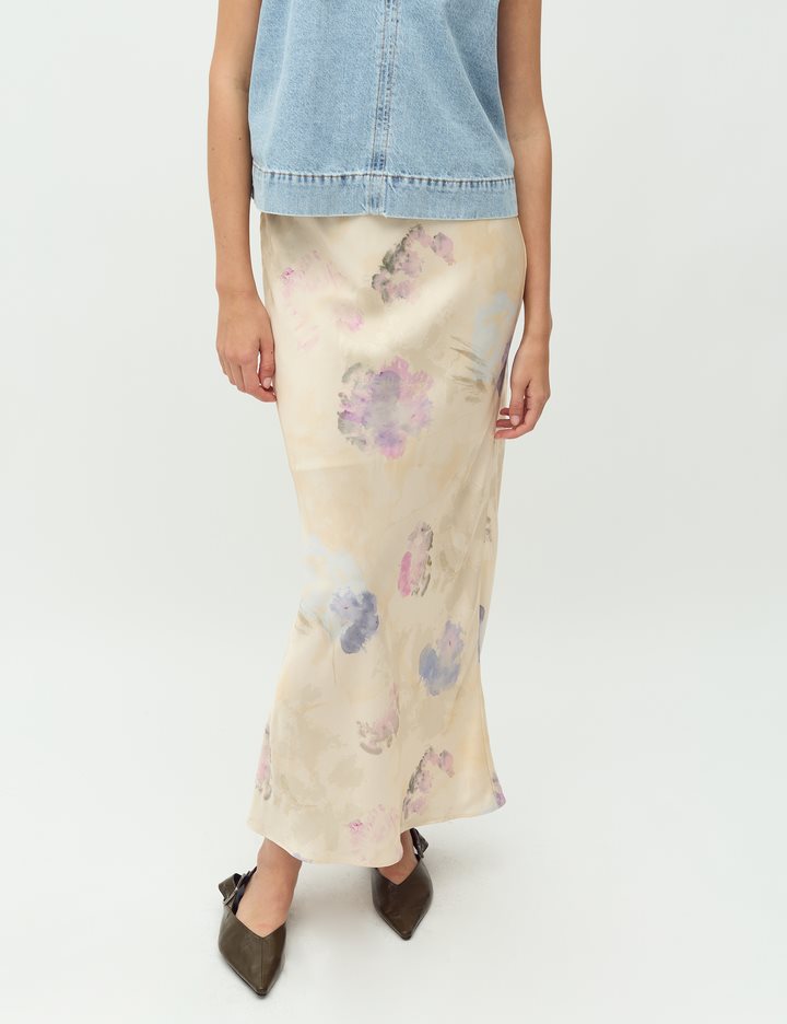 Satin skirt.- Material: 50% ECOVERO Viscose, 50% Viscose- Midi length- Slit at the back- Print- Lace trim at the waist- Elastic at the waistThe model's height is 176 cm and she is wearing a size S.