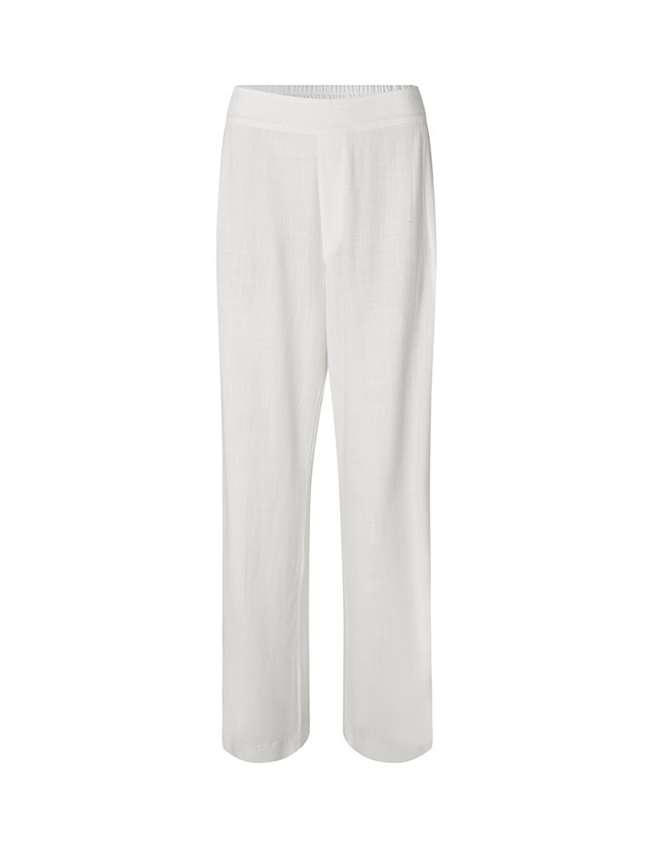 Trousers with elasticated back.- Material: 80% Viscose, 20% Linen- Straight legs- Elasticated waist at the back- Relaxed fit- Side pockets- Fake fly