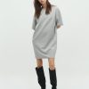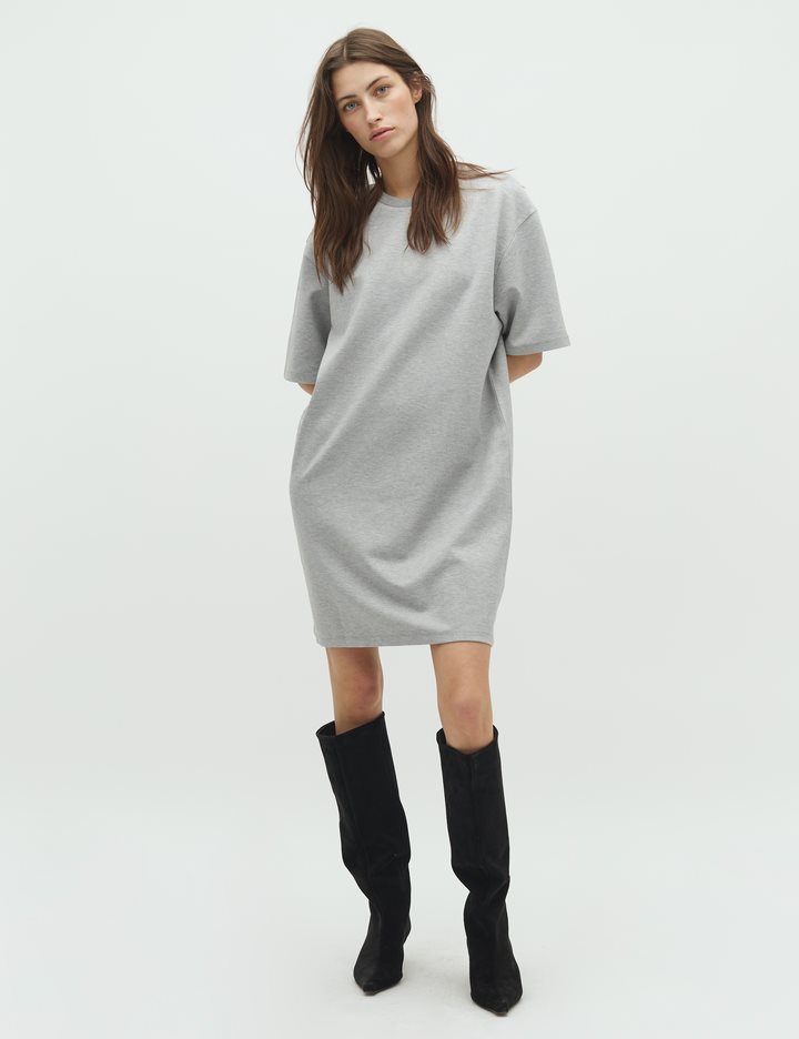 Loose dress with short sleeves.- Material: 74% Viscose, 23% Polyamide, 3% Elastane- Short sleeves- Round neck- Loose fit- Short lengthThe model's height is 176cm and she is wearing a size S.