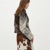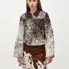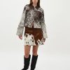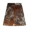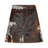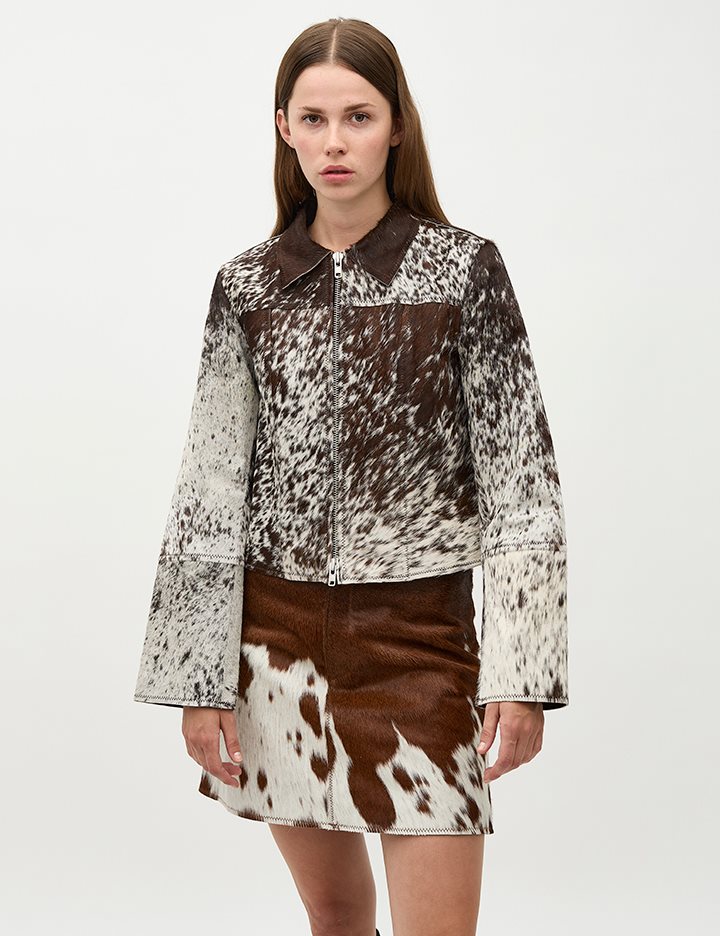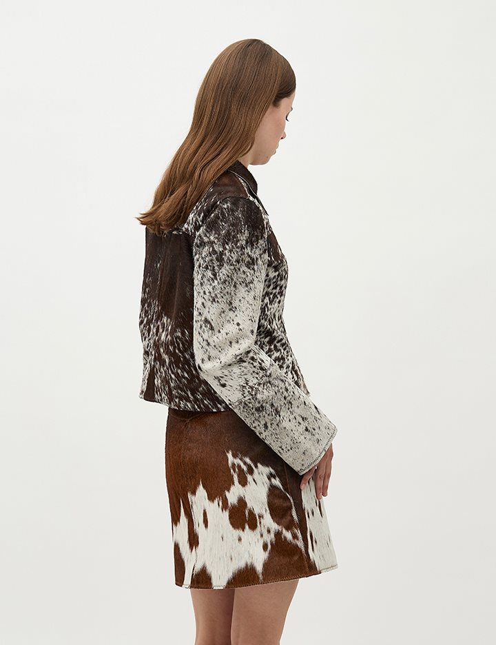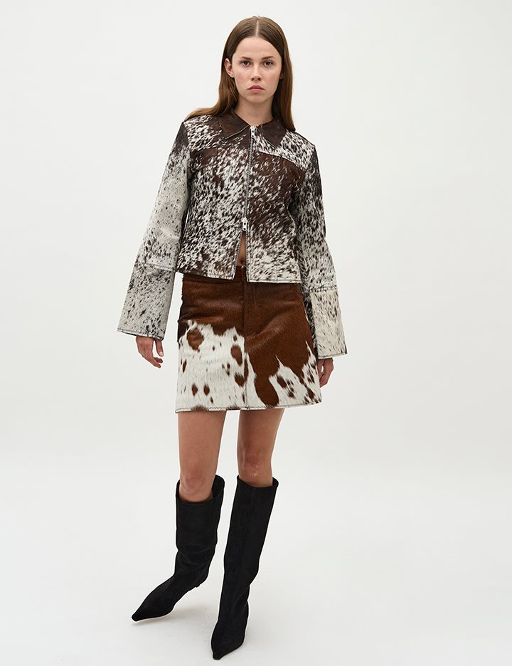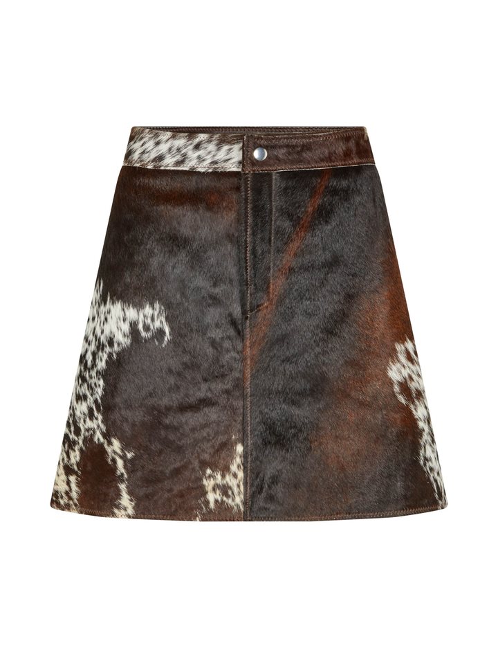 Unique cow and leather skirt. – Material: 100% Cow leather with hair- Normal fit- Closes with a zipper and button- Fully lined- Please note!! Each skirt comes with a unique pattern and color. The models height is 178 cm and is wearing a size S