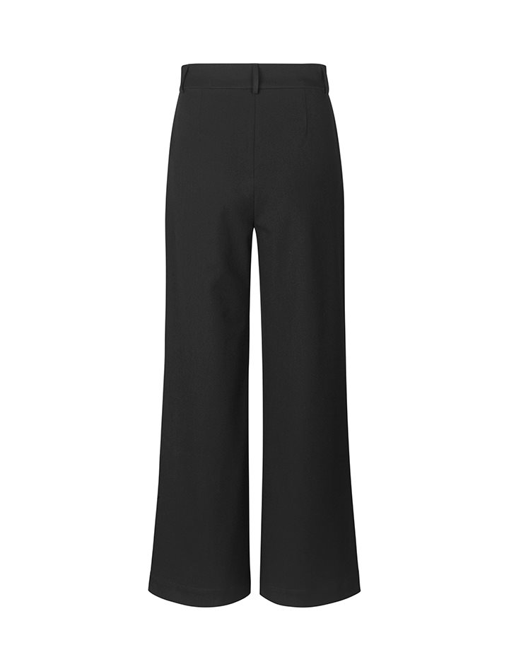 Suit pants with wide legs.- Material: 62% Recycled Polyester, 33% Viscose, 5% Elastane- Side pockets – Closes with a zipper and clasps- Belt straps