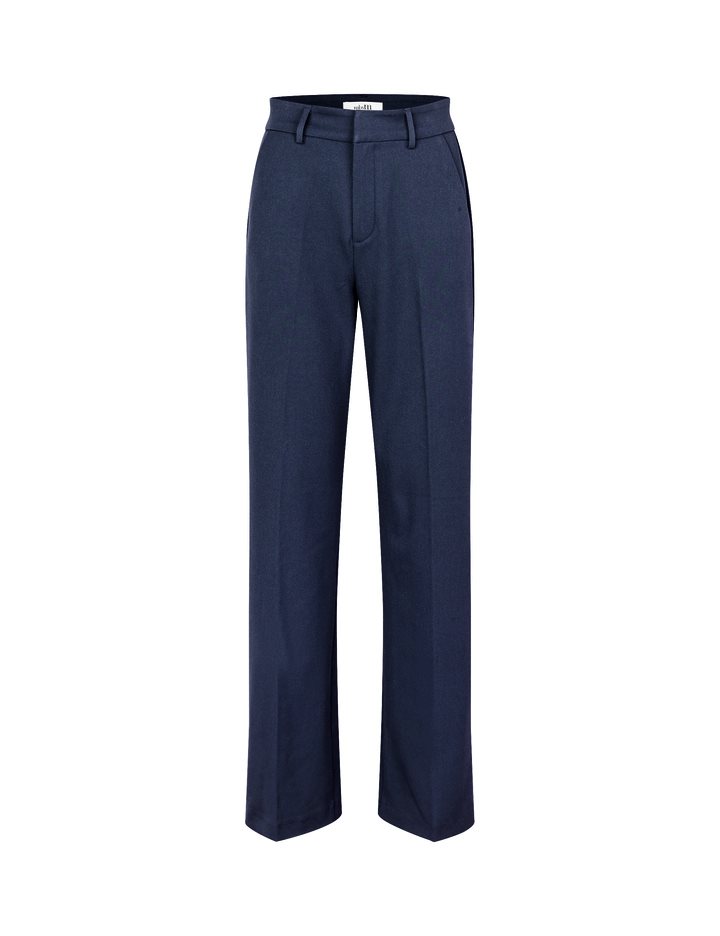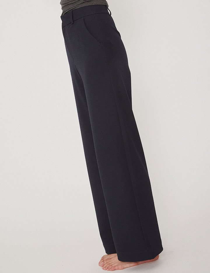 Suit pants with wide legs.- Material: 62% Recycled Polyester, 33% Viscose, 5% Elastane- Side pockets – Closes with a zipper and clasps- Belt straps