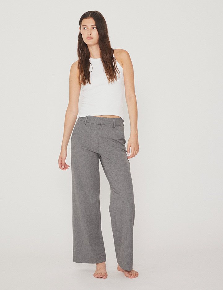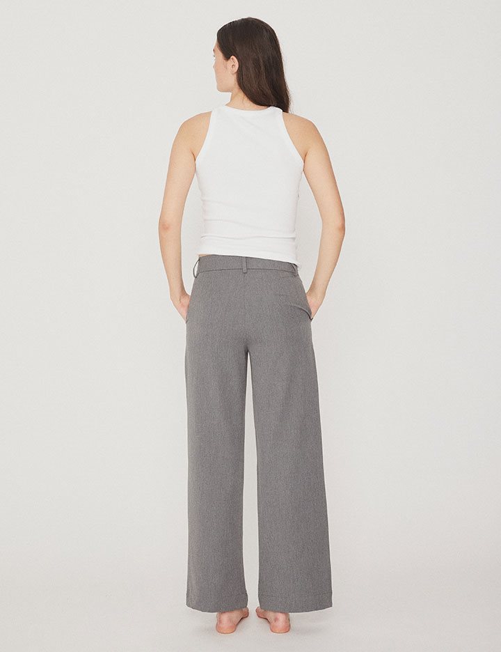 Suit pants with wide legs.- Material: 62% Recycled Polyester, 33% Viscose, 5% Elastane- Side pockets – Closes with a zipper and clasps- Belt straps