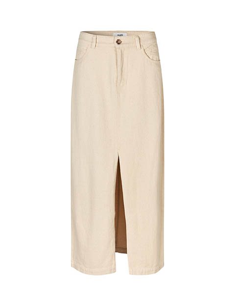 Maxi skirt with front slit.- Material: 100% Cotton- Zip and button closure- Maxi length- Front slit- Side pockets- Colour: Nature LookThe height of the model is 178 cm and she is wearing a size S.