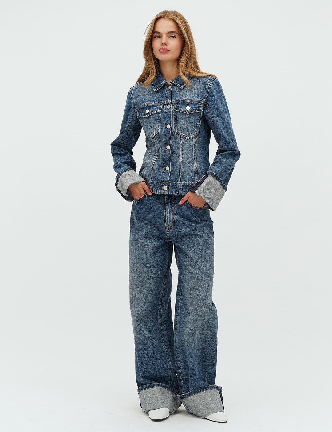Jeans with flared hem.- Material: 100% Cotton- Low-waist- 5-pocket jeans- Baggy, relaxed fit- Wide leg with flared hemThe model is 176 cm tall and is wearing a size S.
