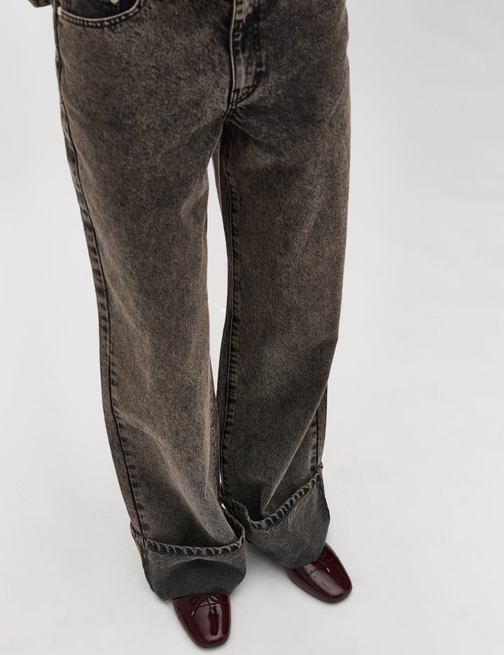 Mid-waist jeans with fold-up.- Material: 100% Cotton- 5 pocket jeans- Washed brown color- Fold-up- Mid-waist- Wide legs- Color: Chocolate MartiniThe height of the model is 178 cm and she is wearing a size S. She is wearing the matching Liandra-M Denim Jacket.