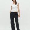 Pants with a narrow belt.- Material: 63% Recycled Polyester, 33% Viscose, 4% Elastane- Small matching belt- Back pockets- Loose fit- Side pocketsThe model is 176 cm tall and is wearing a size S.