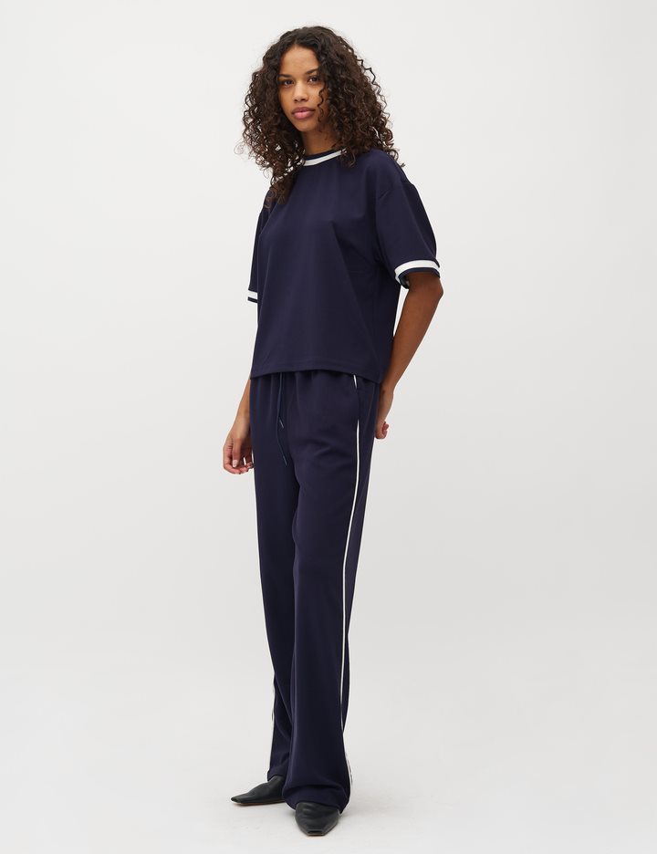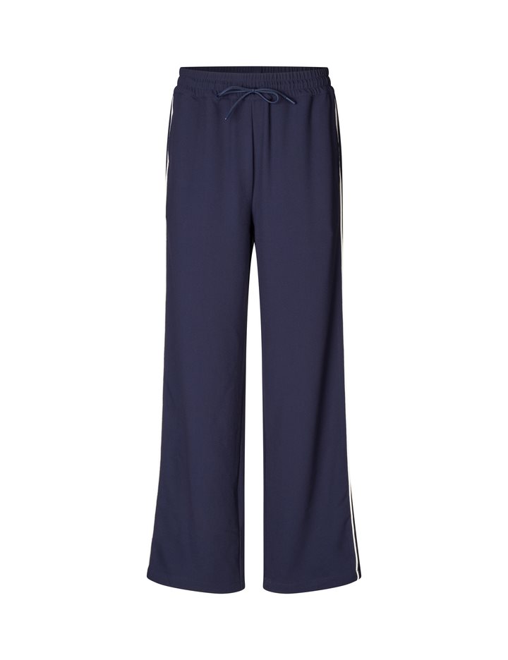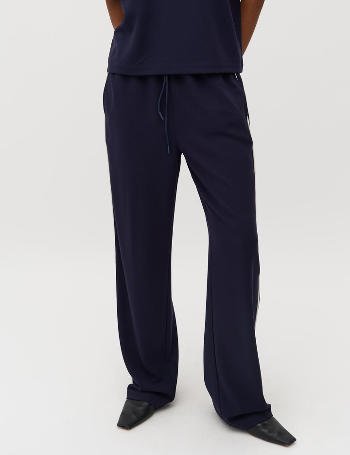 Loose pants with a stripe on the side and elastic at the waist.- Material: 60% Polyester, 35% Viscose, 5% Elastane- Elastic at the waist- Wide legs- Adjustable waist- Closes with laceThe model's height is 176 cm and she is wearing size S.