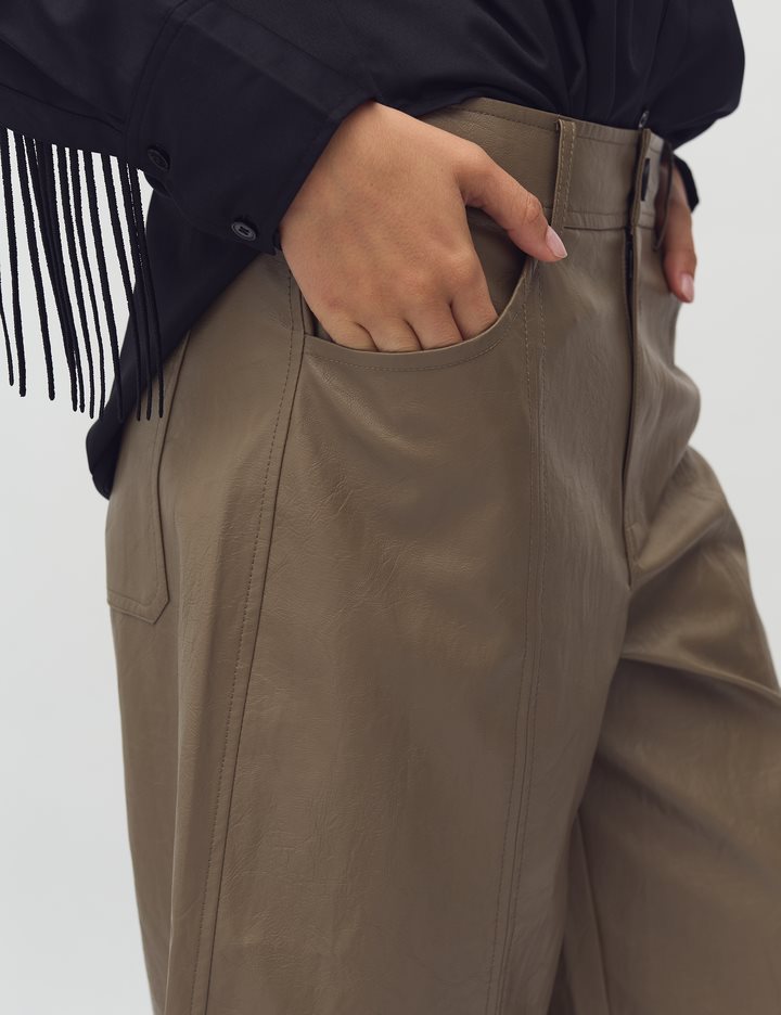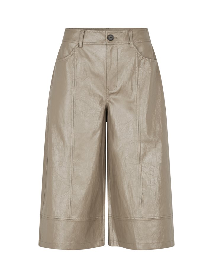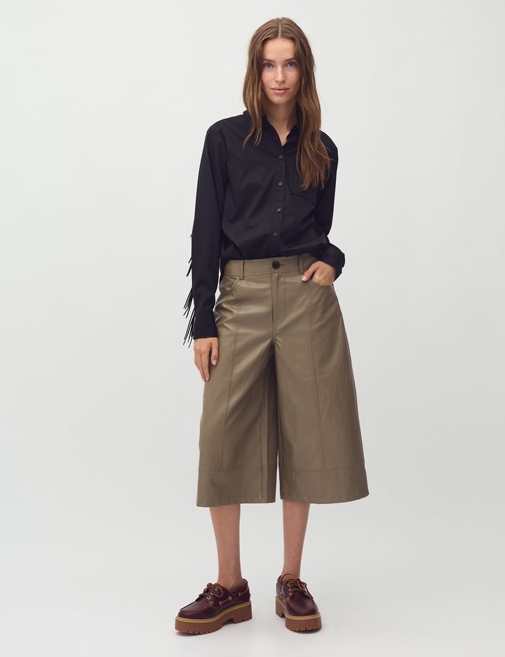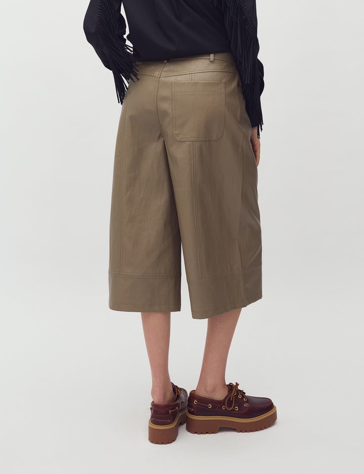 Long Bermuda shorts with wide legs.- Material: 73% Viscose, 15% Polyester, 8% Cotton, 4% Metal fibers- Wide legs- Mid waist- Belt loops- Side pockets- 1 back pocket- Leather lookThe model is 176 cm tall and is wearing a size S.