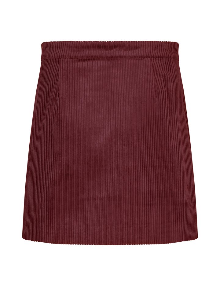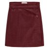 Pretty skirt in velvet material- Material: 100% Cotton – Inside: 100% Polyester- With 3 front buttons- Wrap effect- Cool velvet material- Colour: BordeauxThe height of the model is 178 cm and she is wearing a size S.