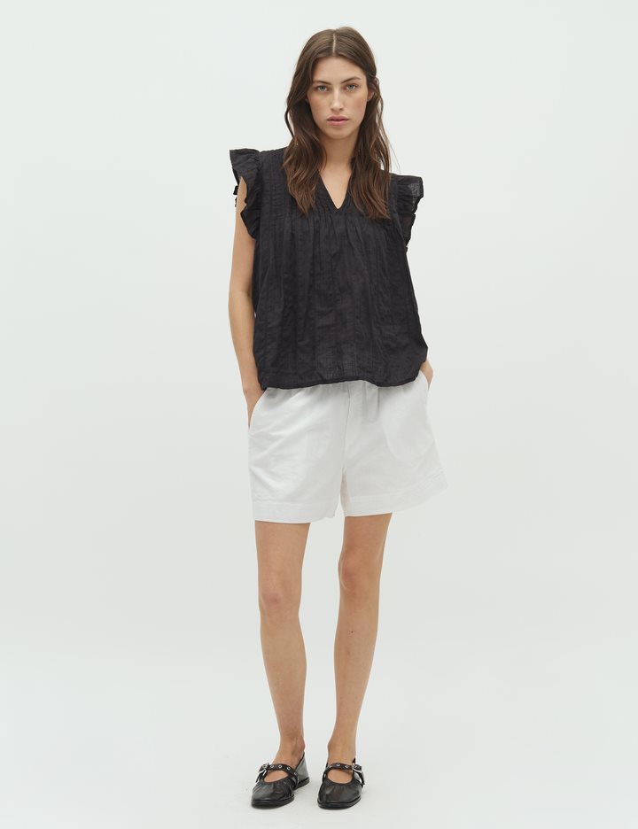 Short linen shorts with side pockets.- Material: 70% Cotton, 30% Linen- Short length- Side pockets- Elasticated waist