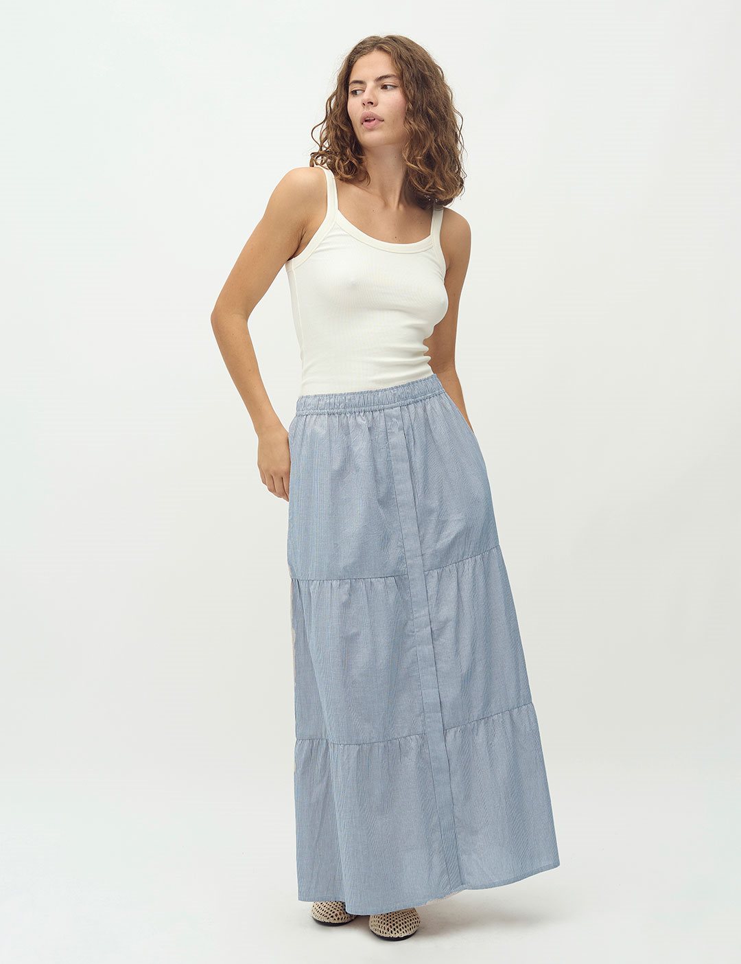 Long skirt with elasticated waist.- Material: 100% Cotton- Elasticated waist- Wide skirt- Maxi lengthThe model's height is 176 cm and she is wearing a size S.