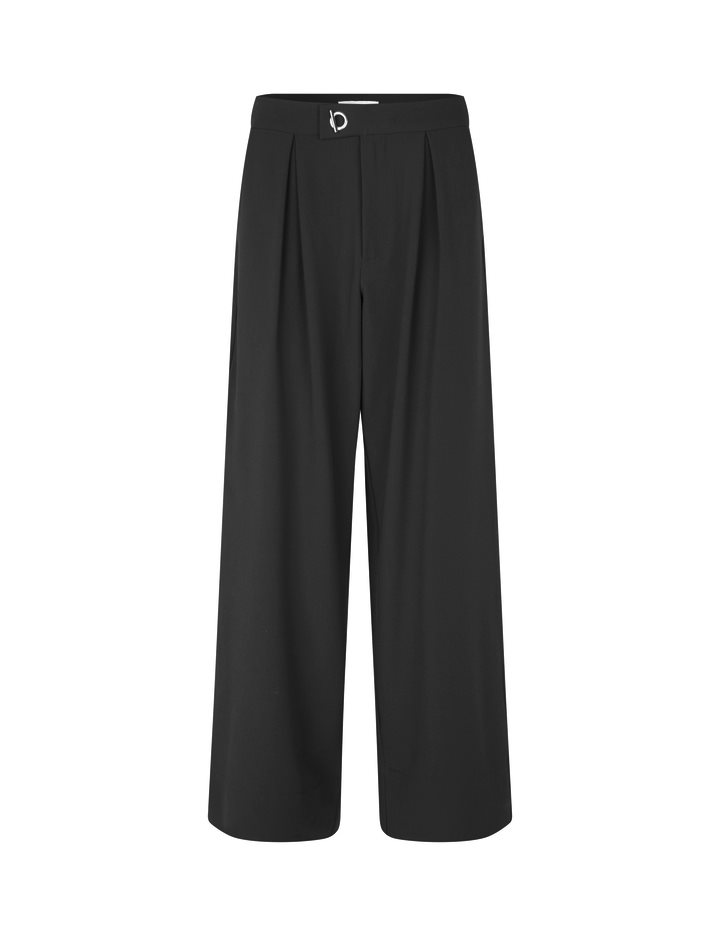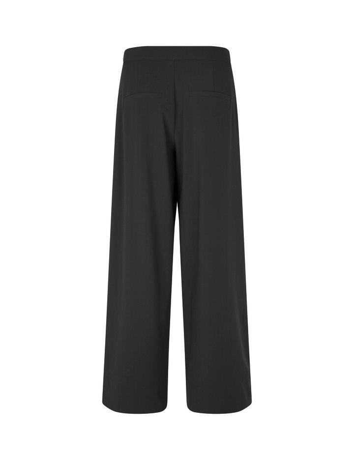 Elegant trousers with a loose fit.- Material: 63% Polyester, 33% Viscose, 4% Elastane- Mid waist- Fastens with buckle and zipper- Pleats at the front- Welt pockets- Loose fitThe model's height is 176 cm and she is wearing a size S.
