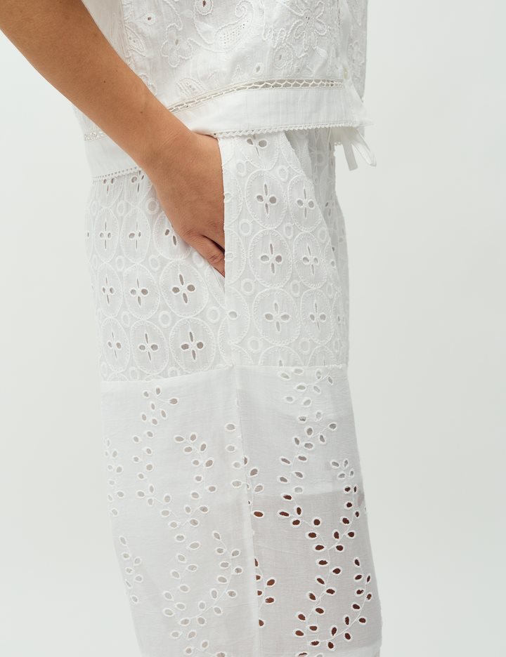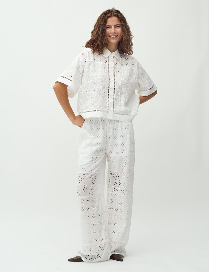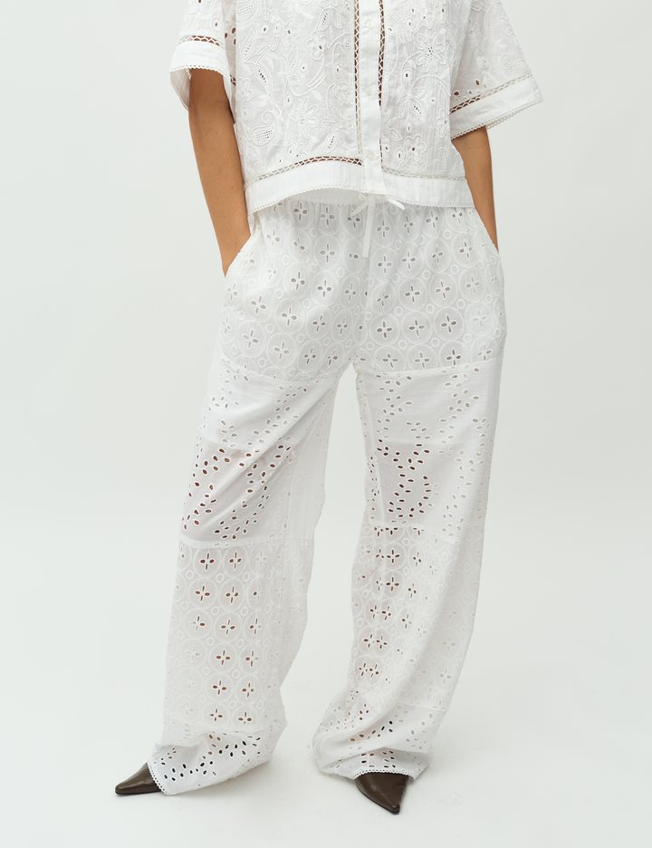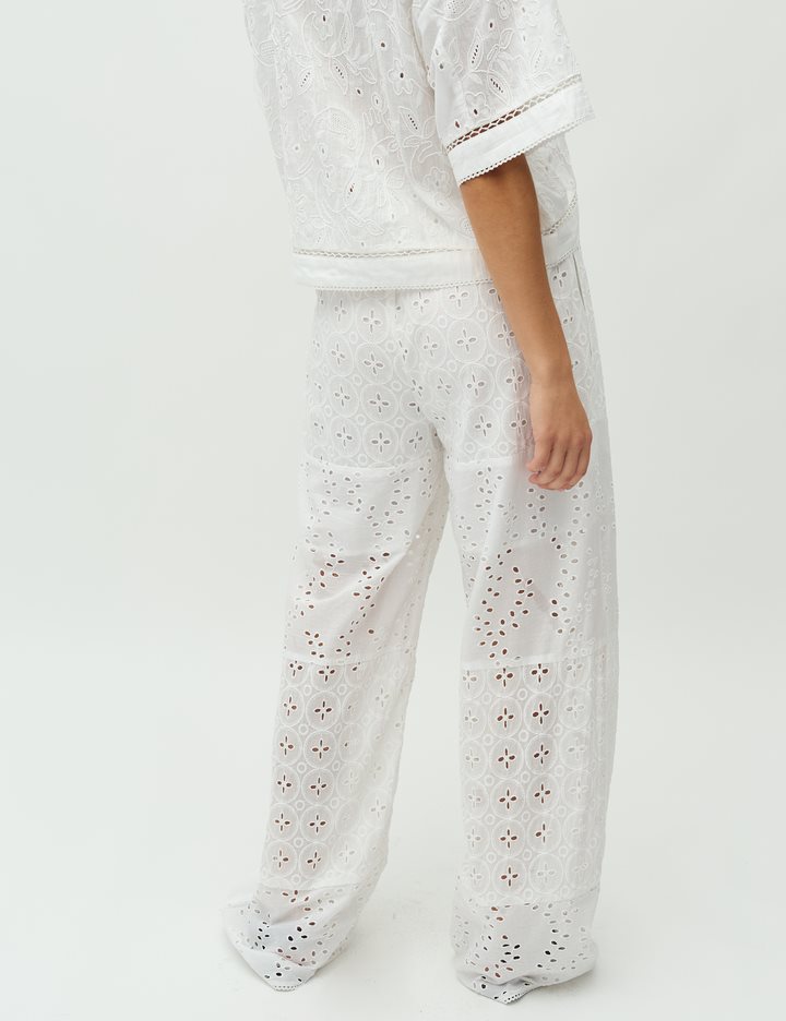 Trousers with embroidery and wide legs.- Material: 100% Cotton- Wide legs- Elastic and tie waist- Side pockets- Relaxed fitThe model's height is 176 cm and she is wearing a size S.