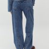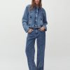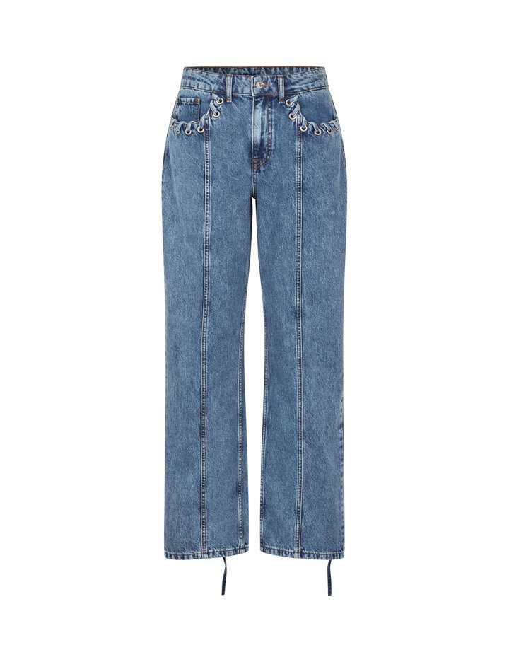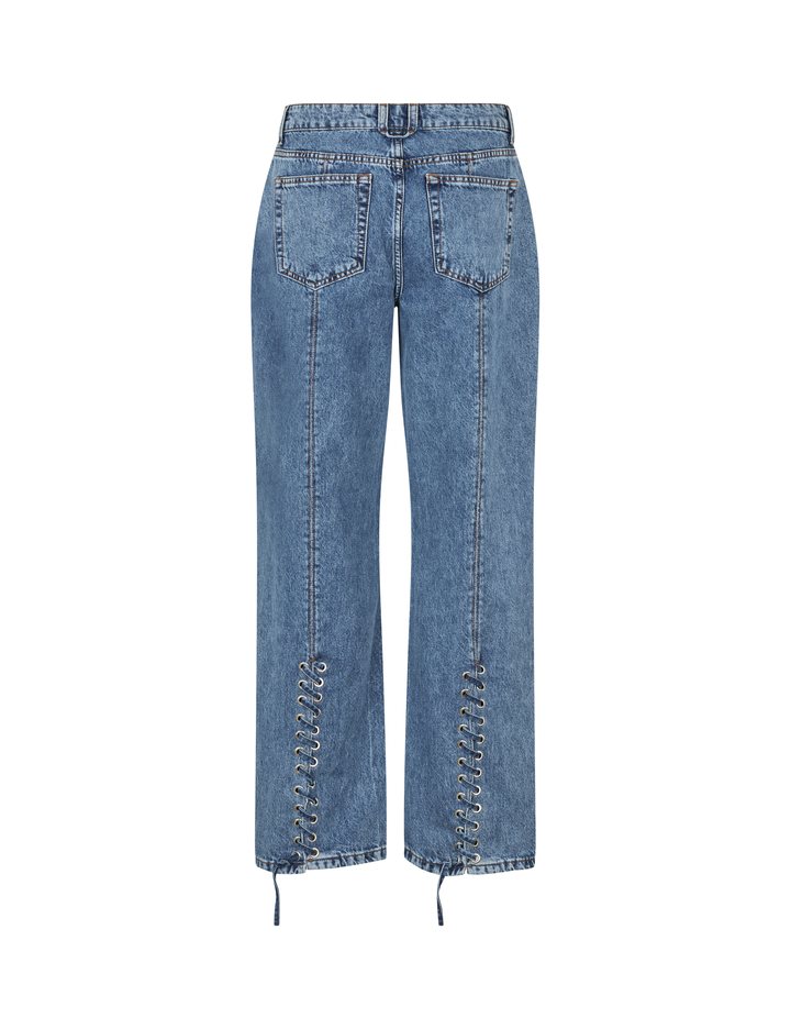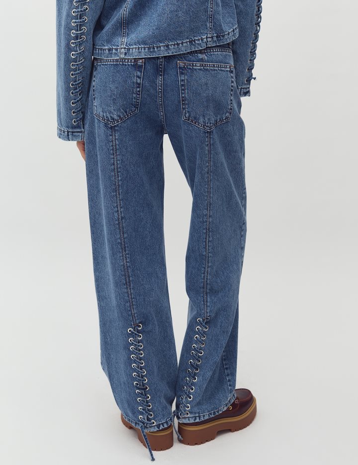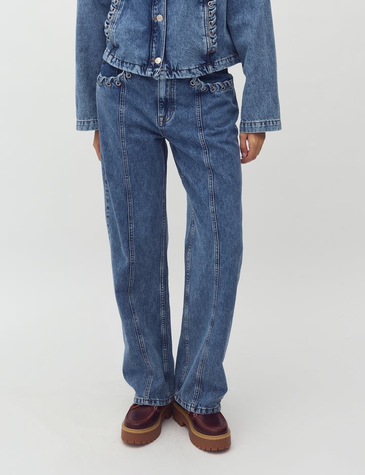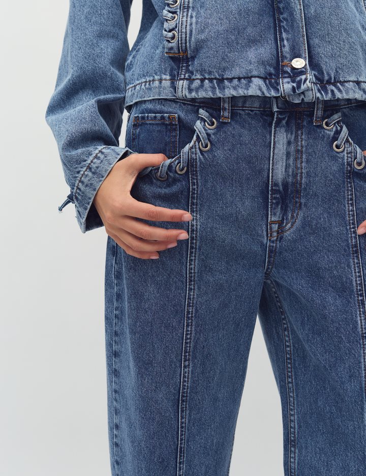 Jeans with lace details.- Materials: 100% cotton- Straight legs- Mid waist- Lace details at back and at pockets- 5 pockets- Button and zip fly- Loose fitThe height of the model is 176 cm and she is wearing a size S.