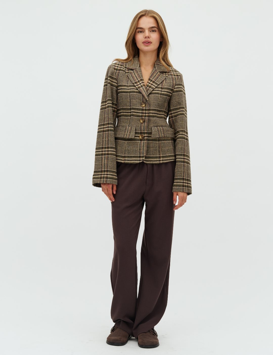Checked blazer jackets.- Material: Outer: 100% Other fibers, Lining: 100 Polyester- Front pockets- Slim fit- Button closure- CheckedThe model's height is 176 cm and she is wearing a size S.