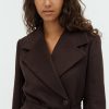 Nice transitional jacket.- Material: 50% Wool, 45% Polyester, 5% mixed fibers (waistband 100% Polyester)- Waist strap- Closes with 2 buttons- Slit at the back- Notch lapel- Button details on sleeves- Midi lengthThe model's height is 176 cm and she is wearing size S.