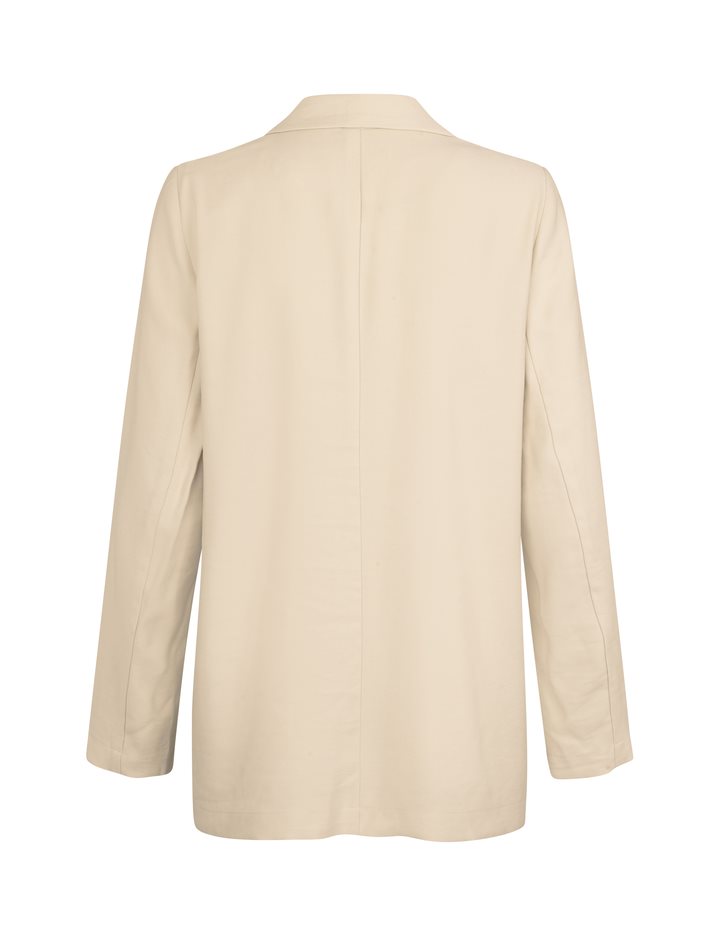 Woven blazer with inner closed seams.- Material: 90% LENZING™ ECOVERO™ Viscose, 10% Polyester- Long sleeves- One button closure- Long, oversized model- 2 side pockets- Reverse collar