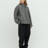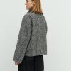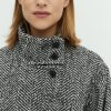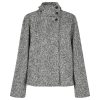 Short jacket with high collar.- Material: Shell; 40% Polyester, 30% Wool, 30% Nylon. Lining; 100% Polyester- Long, wide sleeves- High neck with button details- Loose fit- Length to above the bottom- Slanted side pockets- Closes with concealed buttonsThe height of the model is 175cm and she is wearing a size S.