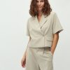Short-sleeved blazer with side closure- Material: 63% Polyester, 33% Viscose, 4% Elastane- Short sleeves- Side button closure- Loose fit- Front pocketsThe model is 176 cm tall and is wearing a size S.
