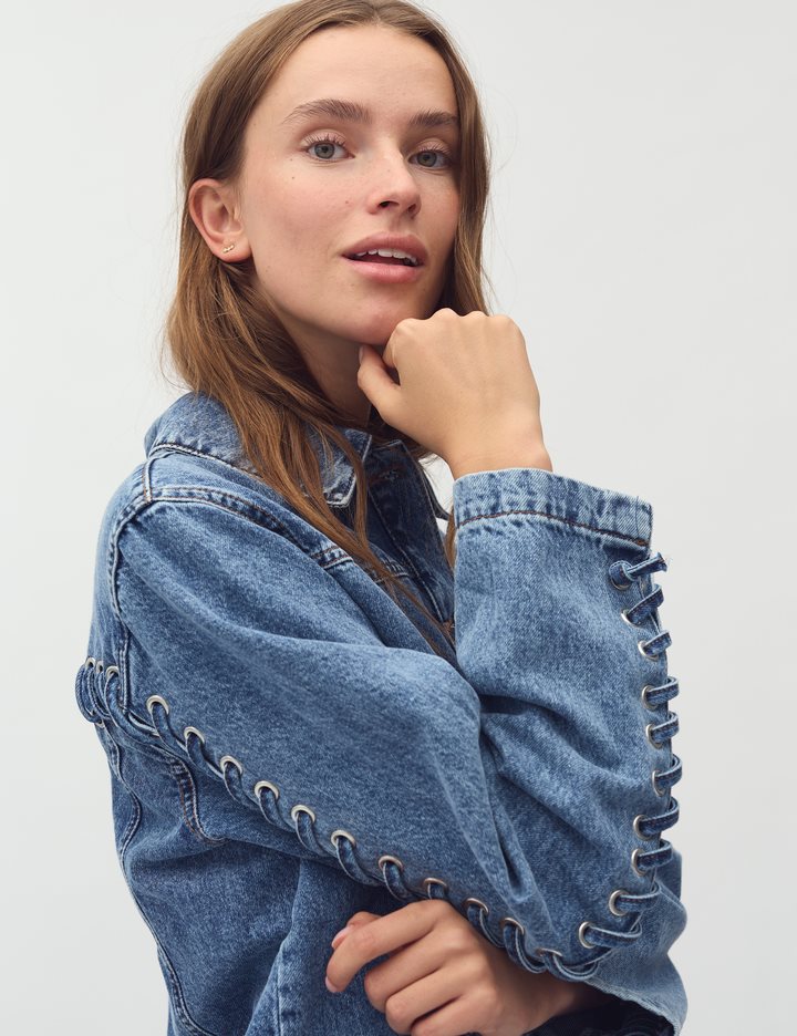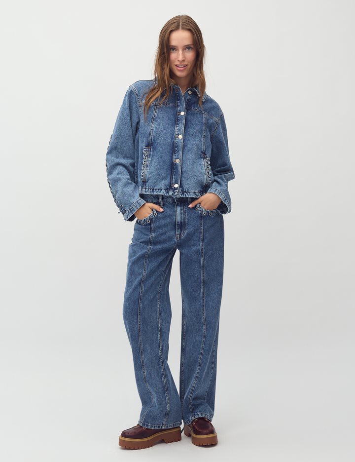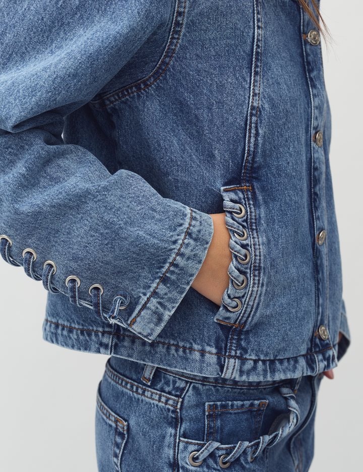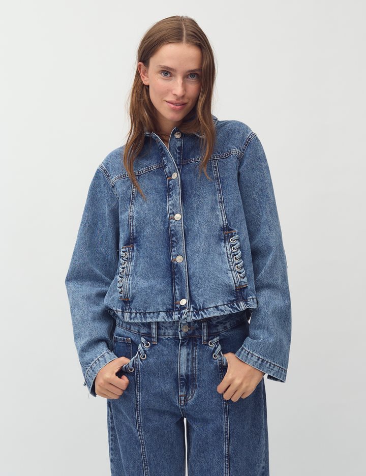 Denim jacket/shirt with lace details.- Material: 100% Cotton- Long sleeves- Shirt collar- Lace details on backside and pockets- Side pockets- Button closure- Relaxed fitThe model's height is 176 cm and she is wearing a size S.