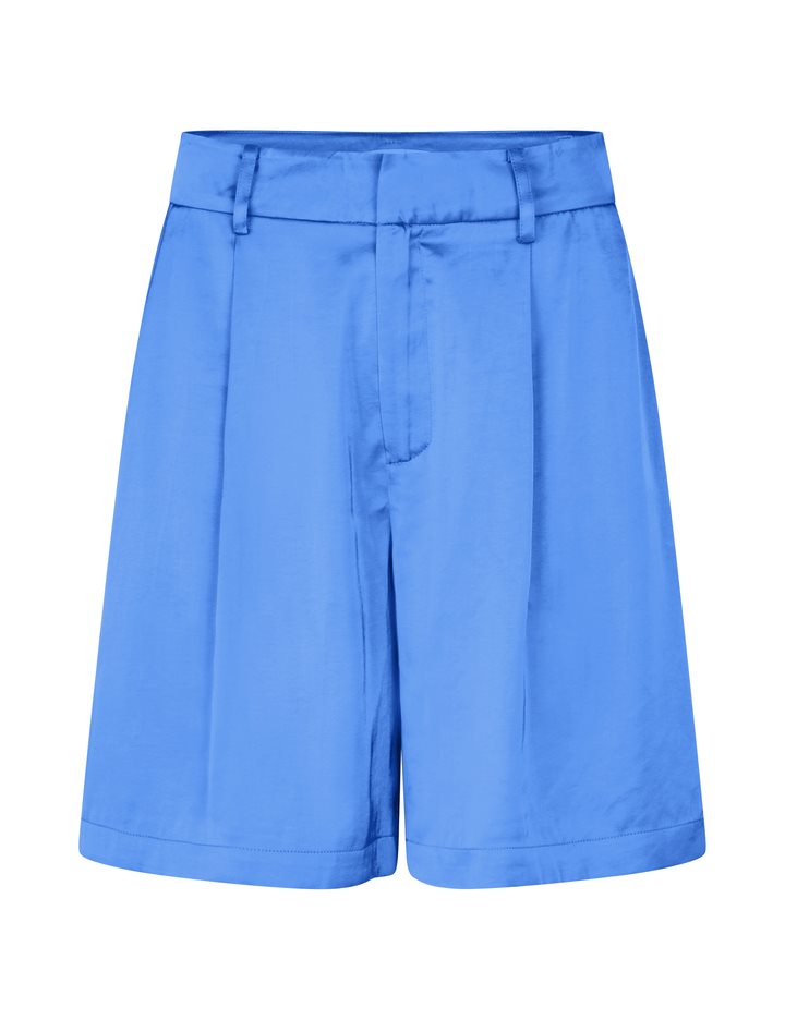 Suit shorts with wide legs.- Material: 54% Polyester, 46% Viscose- Wide legs- Light a-shape- Belt straps- Hook and zip closure- Side pockets- Piped back pocket