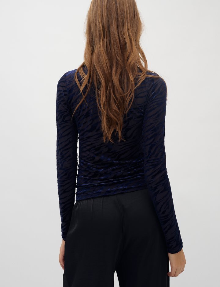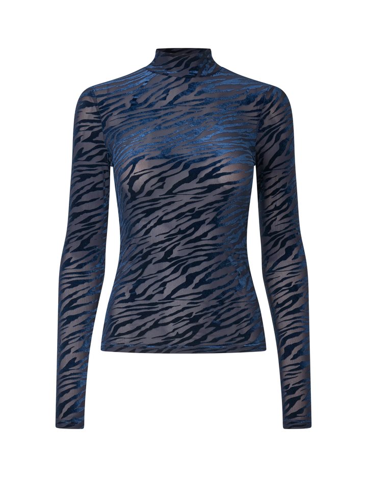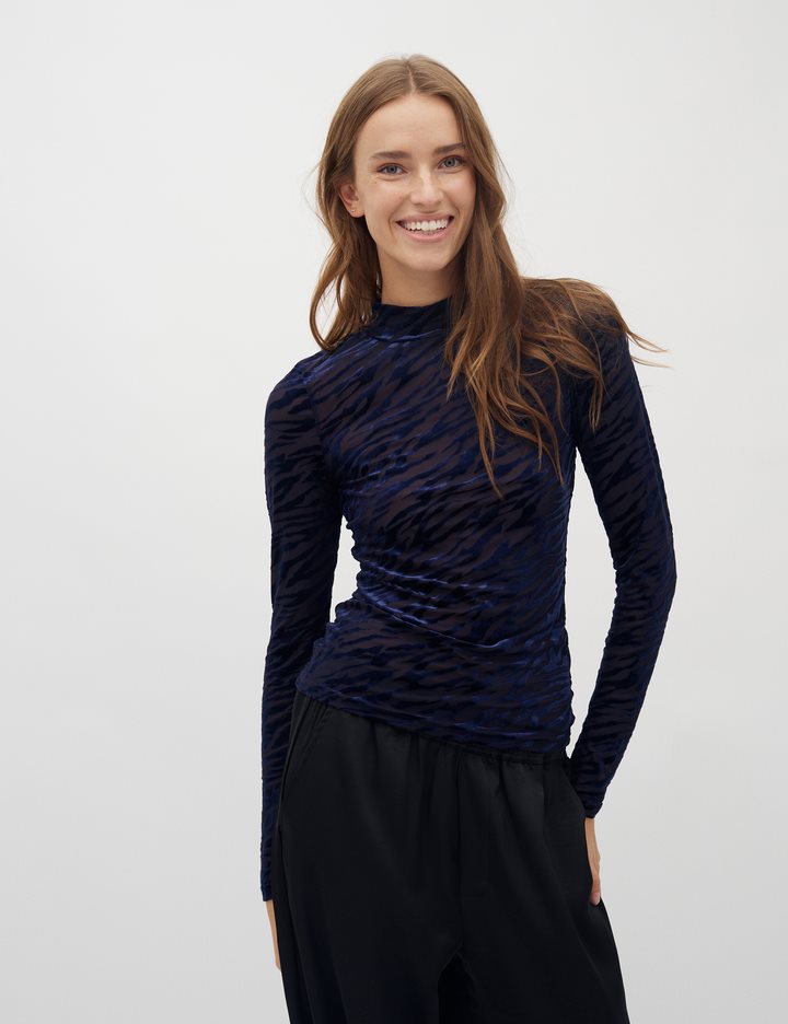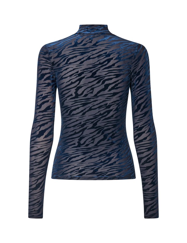 Velvet-mesh top in zebra print- Material: 70% Elastane, 20% Polyamide, 10% Elastane- Transparent- High neck- Velvet zebra print- Tight fitting- Color: Night Sky