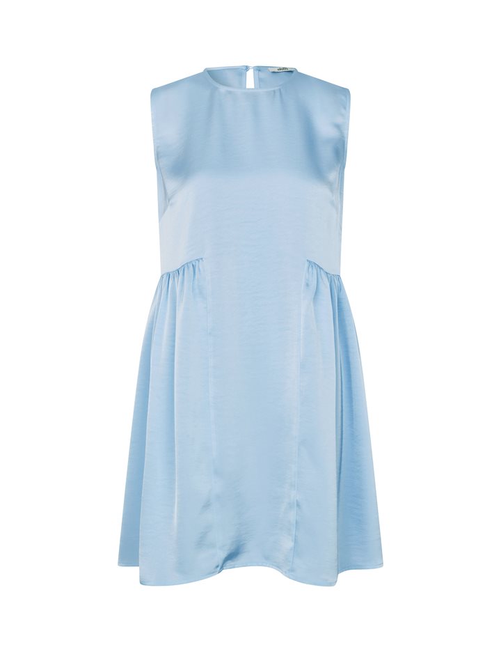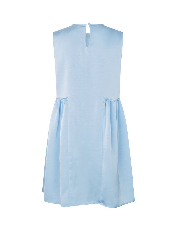 Satin dress with peplum.- Material: 98% Polyester, 2% Elastane- Sleeveless- Peplum at the bottom- Button closure at the back- Loose fit- Satin