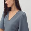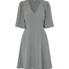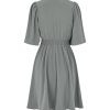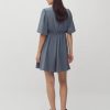Woven dress with v-neck.- Material: 73% TENCELâ„¢ Modal, 27% Polyester- Loose sleeves with a little puff at shoulders- V neck- Tight on the chest- Mini length- Elasticated edge on the backThe height of the model is 176 cm and she is wearing a size S.