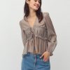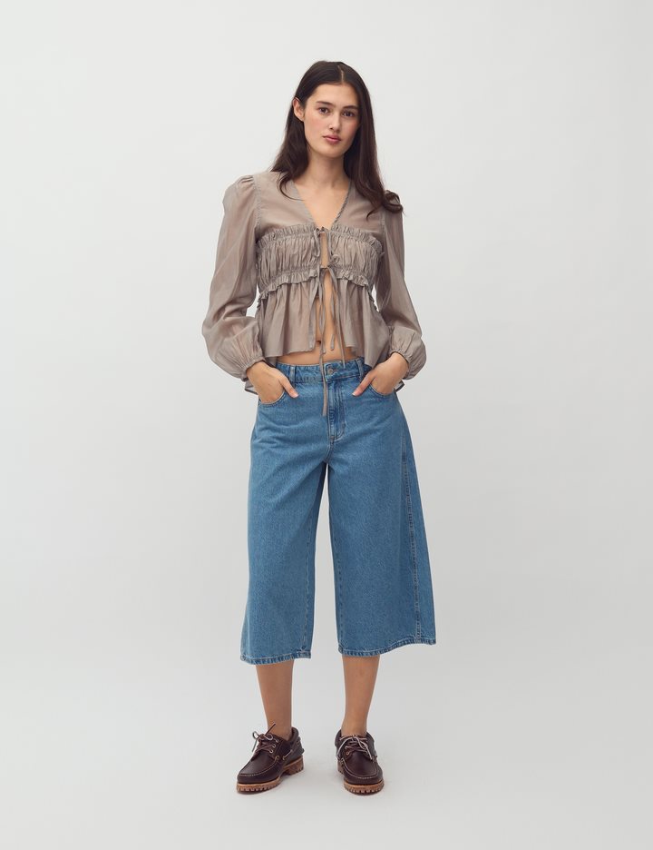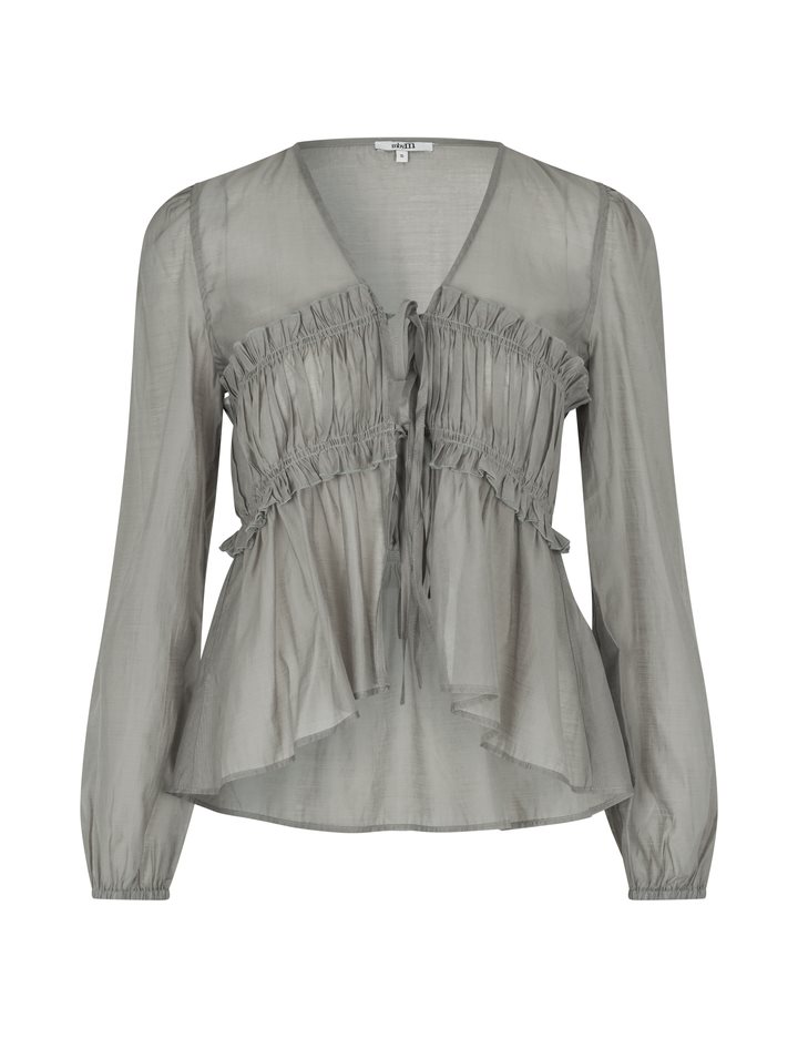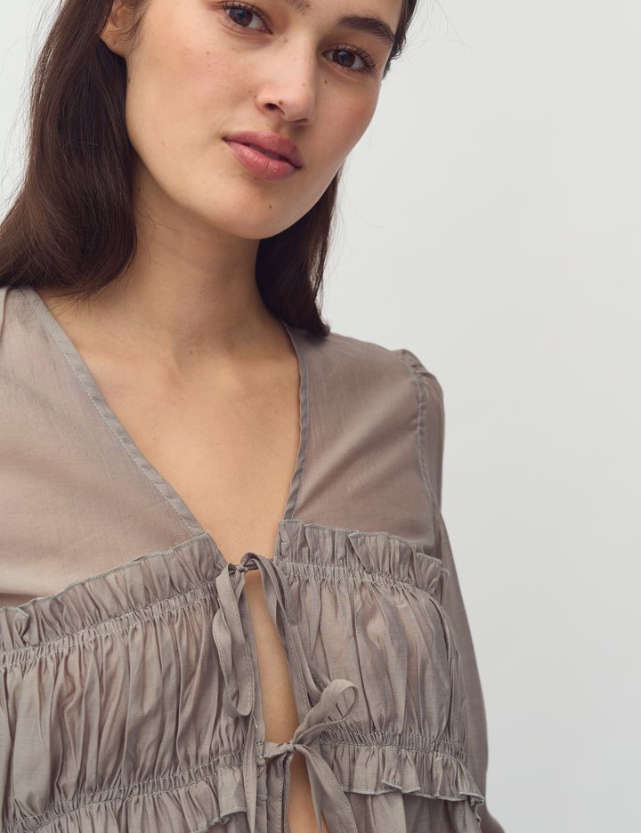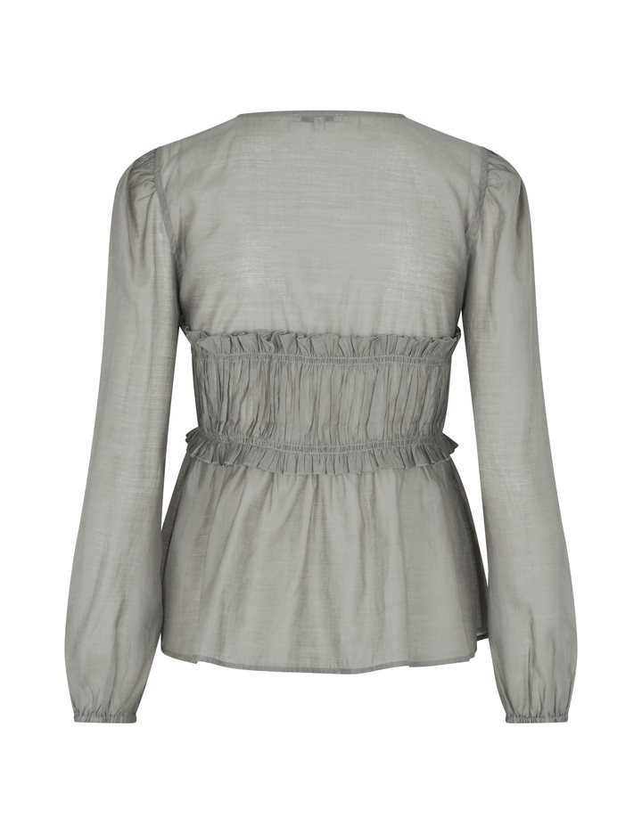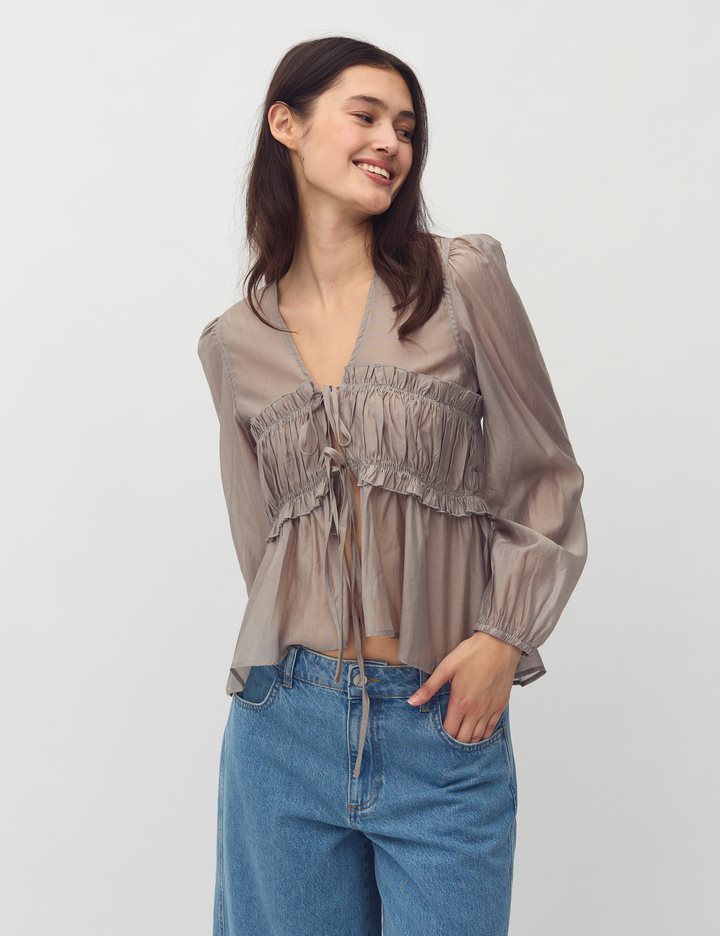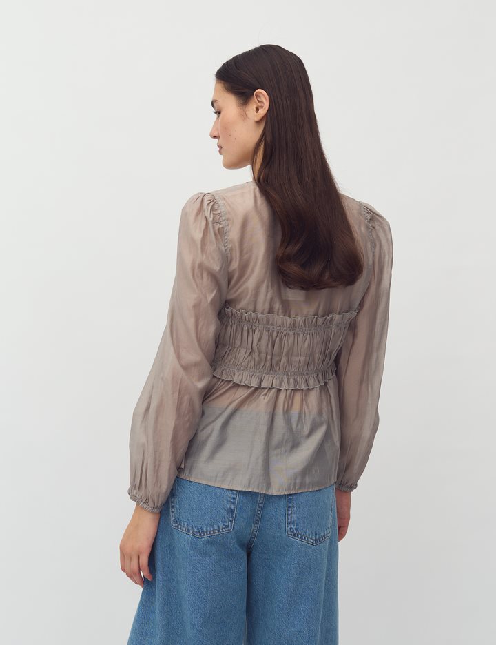 Blouse with smock.- Material: 90% Lyocell (TENCELâ„¢), 10% Polyester- Smock in the front- Drawstring closure- V-neck- Long loose sleevesThe model is 176 cm tall and wears size S.