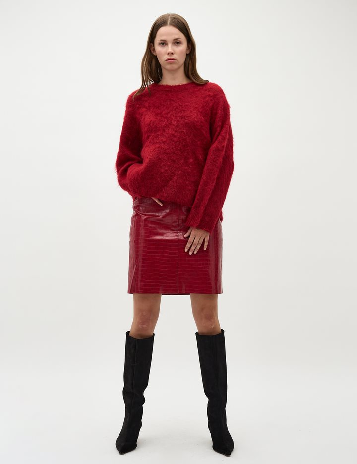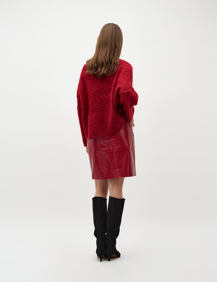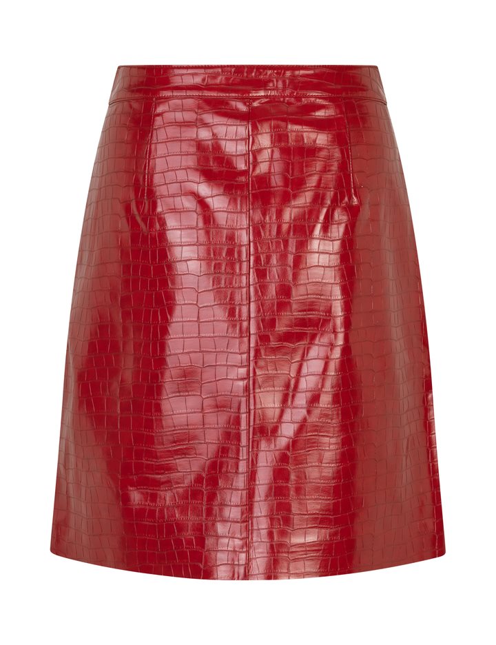 Midi skirt in leather look- Material: 100% Polyurethane- Surface structure- Closes at the front with a zip- Tight fit- Midi length- Color: Red RoseThe model is 176 cm tall and wears size S