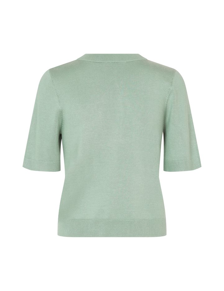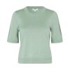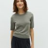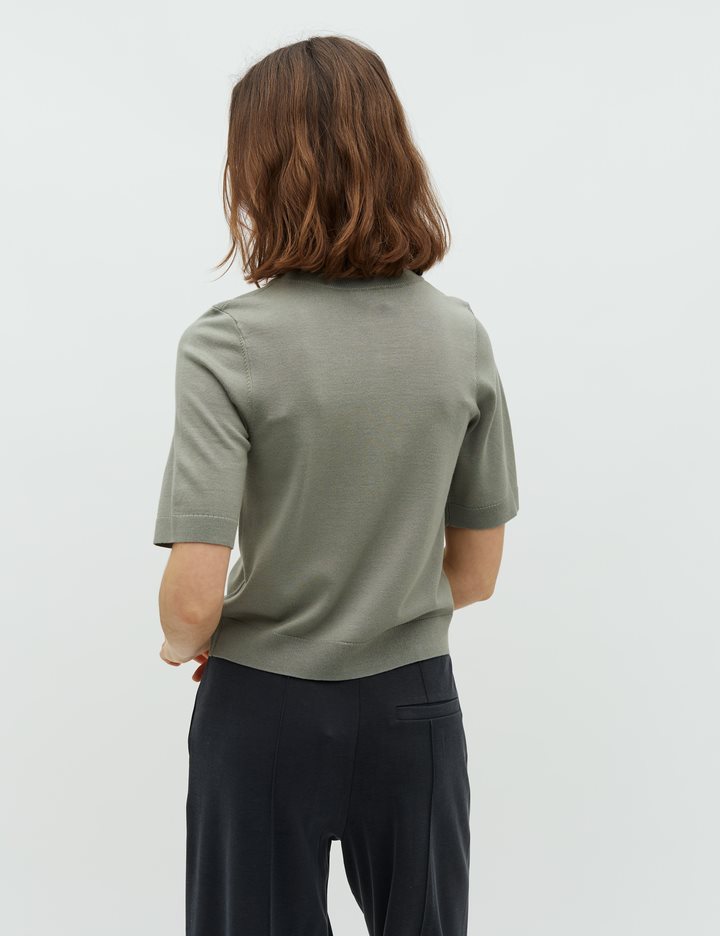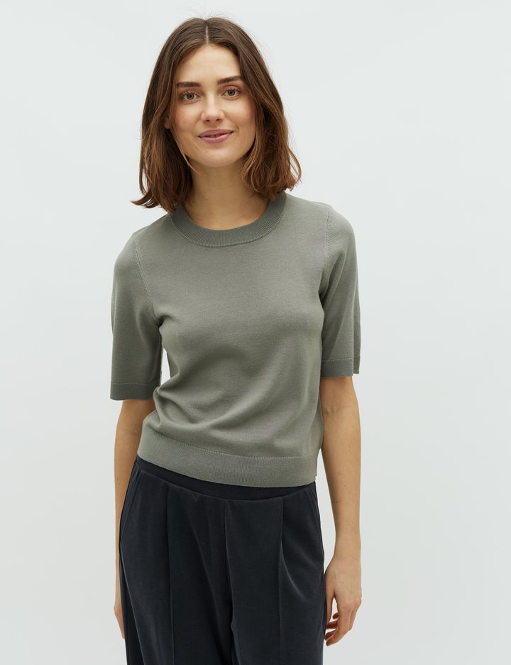 Thin knit sweater with short sleeves.- Material: 70% Viscose, 30% Polyester- Round neck- Normal length- Relaxed fit- Short sleeves with ribbed trim- Ribbed hems