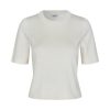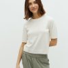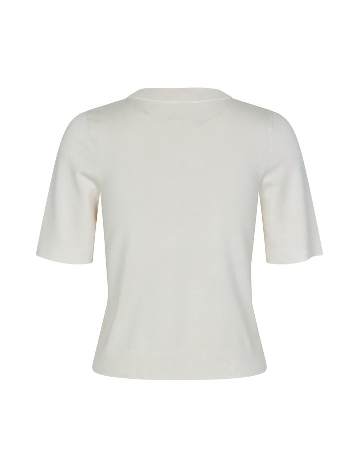Thin knit sweater with short sleeves.- Material: 70% Viscose, 30% Polyester- Round neck- Normal length- Relaxed fit- Short sleeves with ribbed trim- Ribbed hems- Color: SugarThe height of the model is 175 cm and she is wearing a size S.