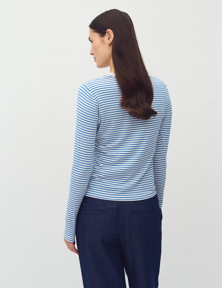 Striped long sleeved top.- Material: 95% TENCELâ„¢ Modal, 5% elastane,- Stretchy and soft- Long sleeves- Round neck- Tight fit- Normal length- Color: Sapphire StripeThe height of the model is 175 cm and she is wearing a size S.