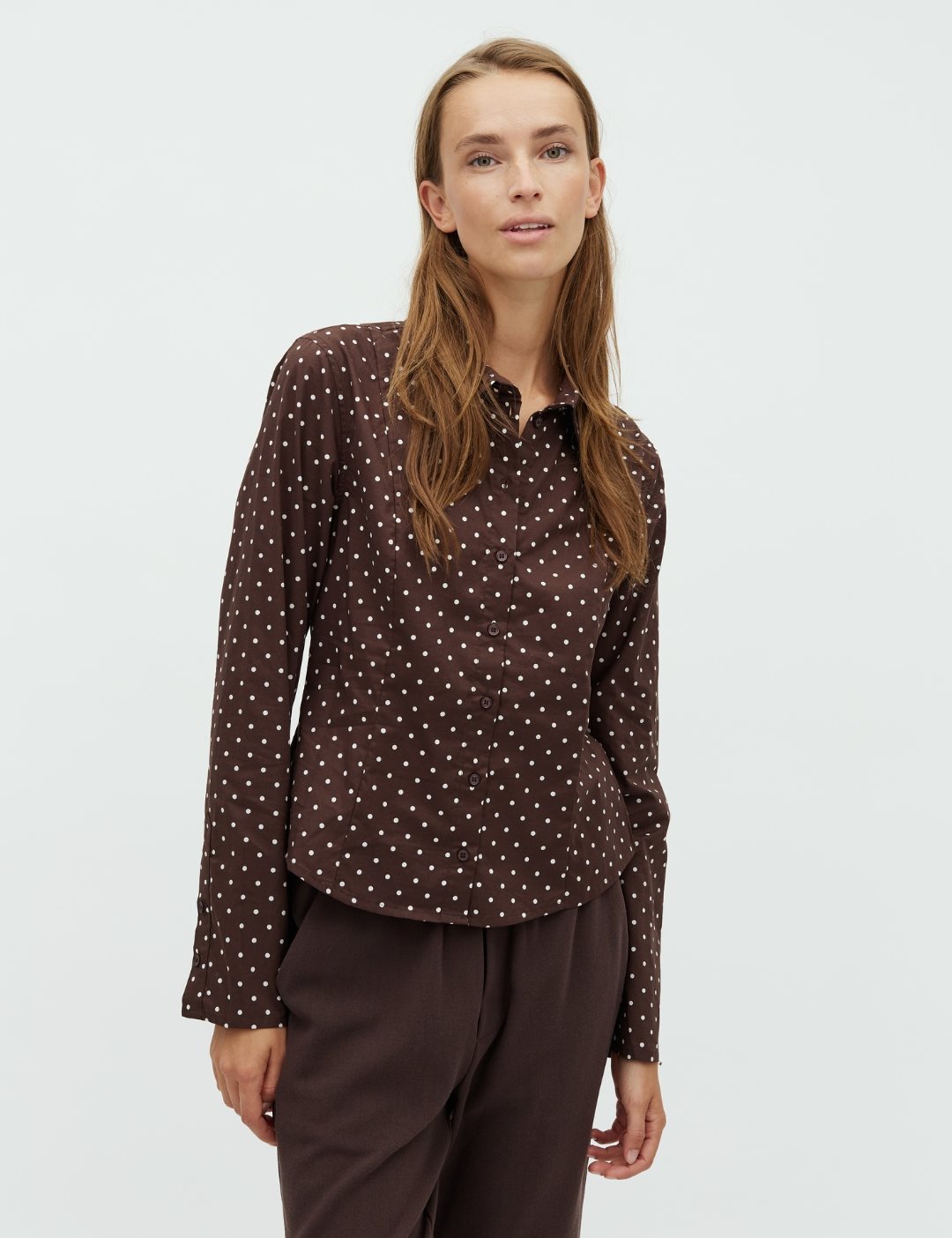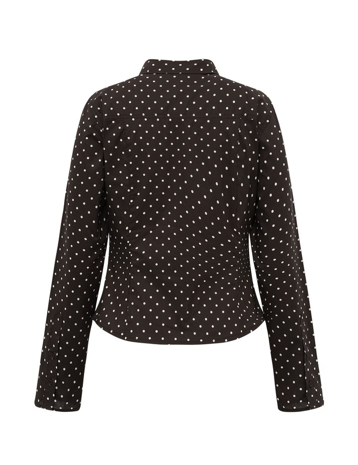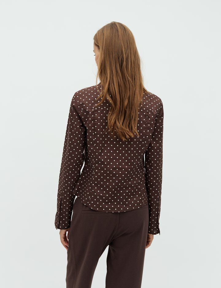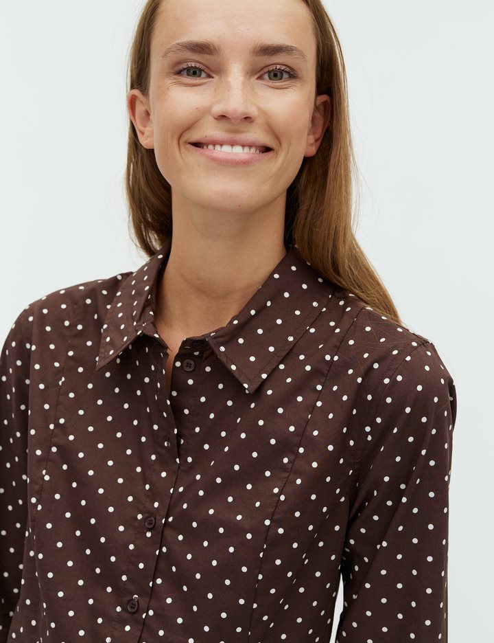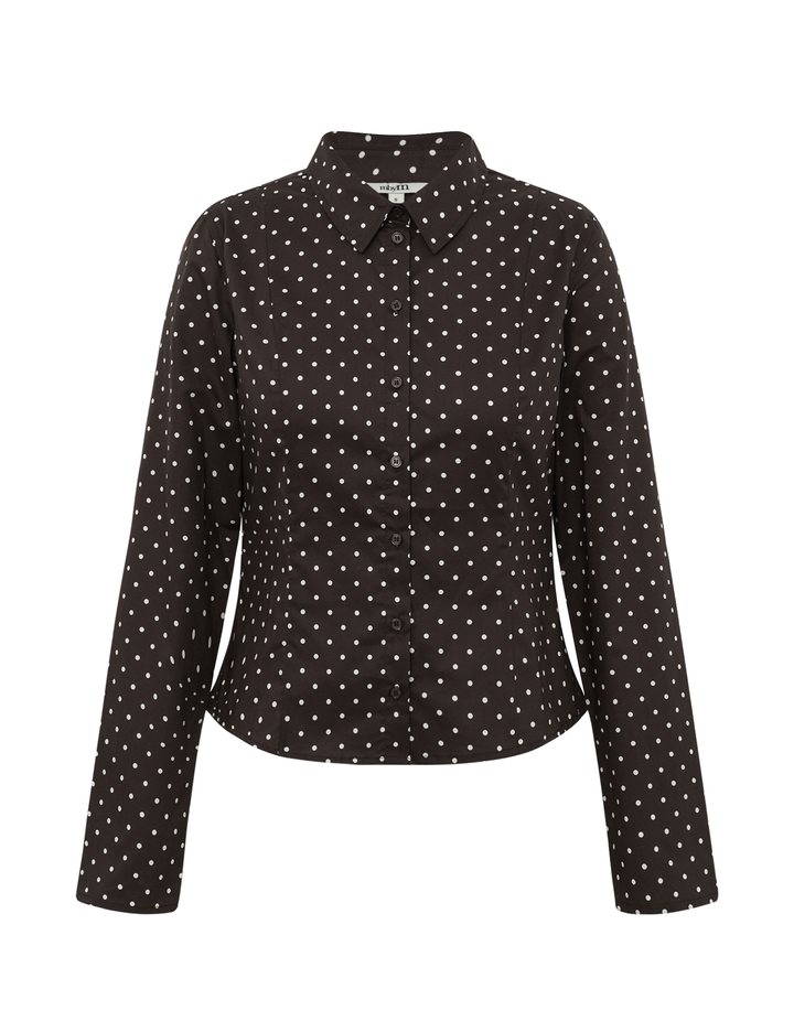 Tight-fit dotted shirt.- Material: 100% Cotton- Shirt collar- Button closure- Tight-fit- Short length- DottedThe height of the model is 176 cm and she is wearing a size S.