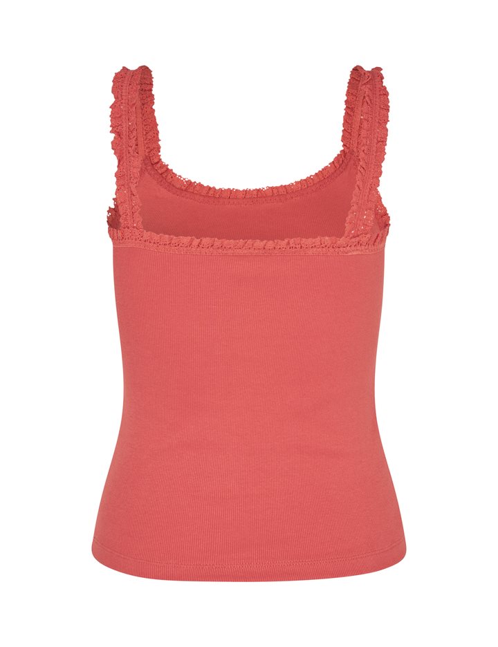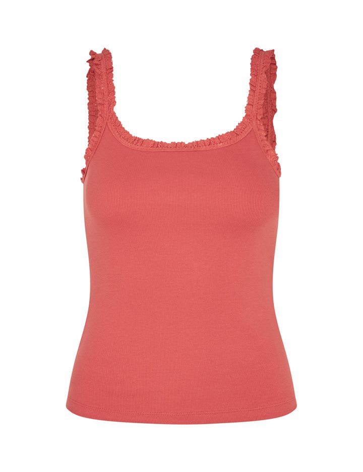 Basic top with ruffled hem.- Material 95% Cotton, 5% Polyester- Soft quality- Details on straps- Tight-fitting