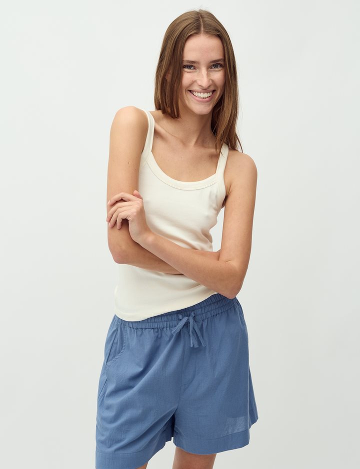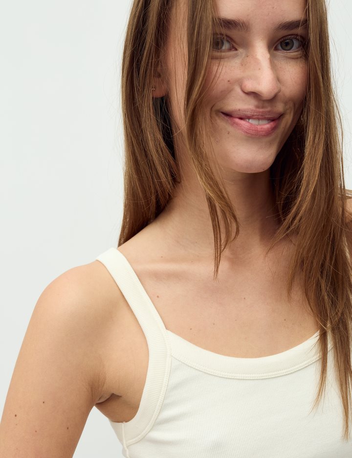 Round neck top- Material: 95% Cotton, 5% Elastane- Tight-fitting- Soft quality- StrapsThe model's height is 176 cm and she is wearing a size S.