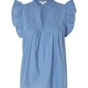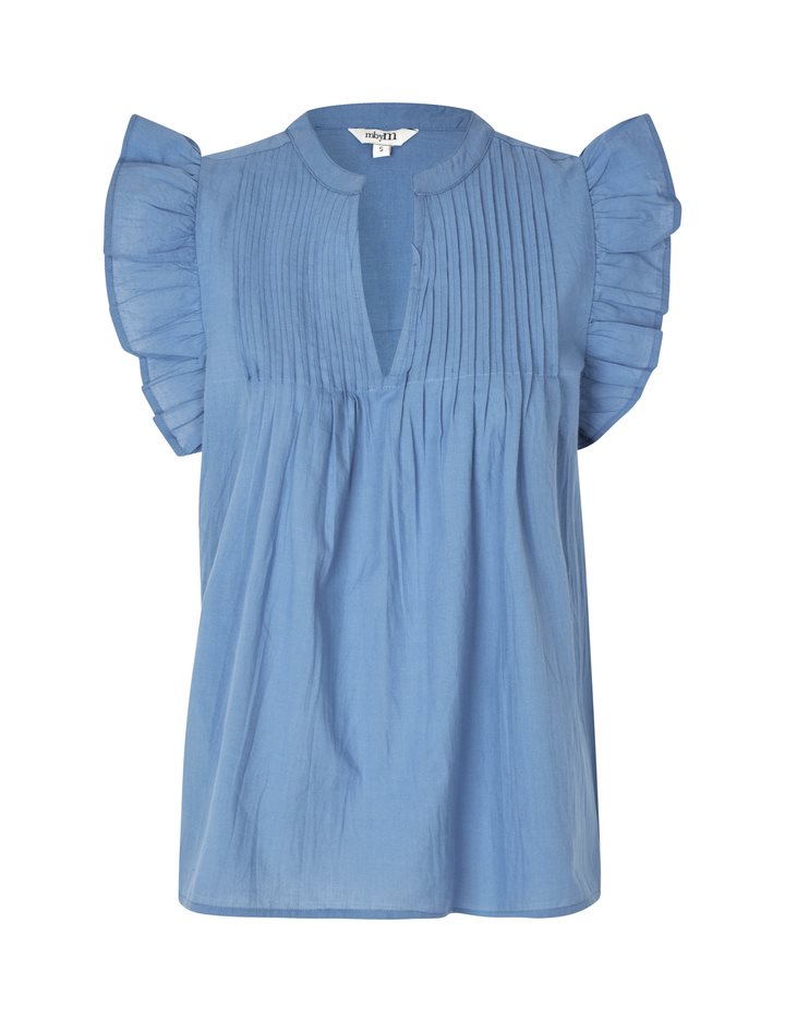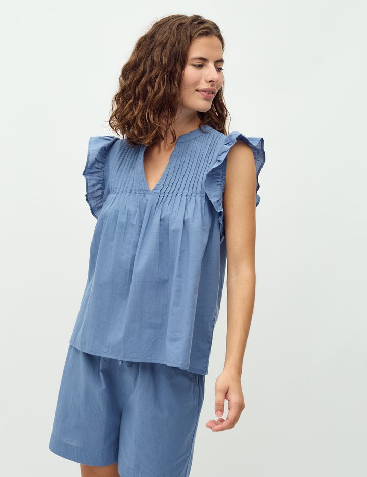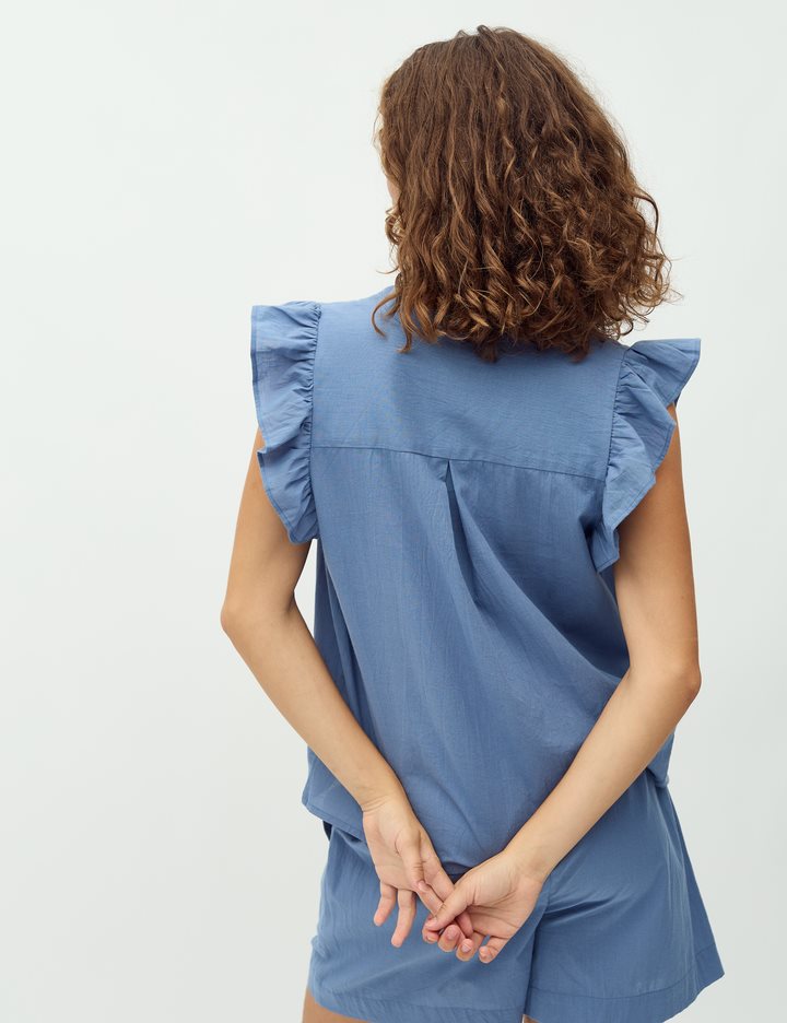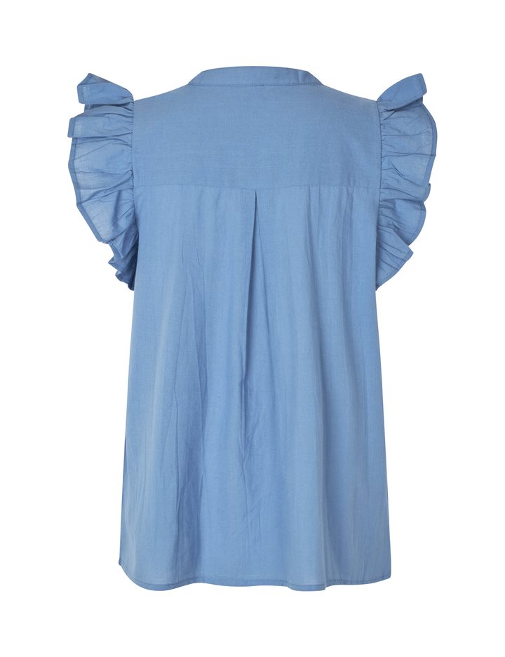 Top with ruffle details at the shoulders.- Material: 100% Cotton- Sleeveless- Round neck with v-neck- Relaxed fit- Pattern in the fabric- Regular lengthThe model's height is 176 cm and she is wearing a size S.