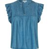 Top with ruffle details at the shoulders.- Material: 67% Lyocell (TENCEL™), 33% LENZING™ ECOVERO™- Sleeveless- Round neck with v-neck- Relaxed fit- Regular lengthThe model is 176 cm tall and is wearing a size S.