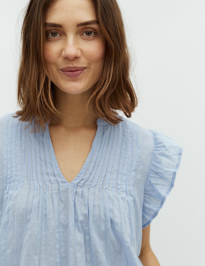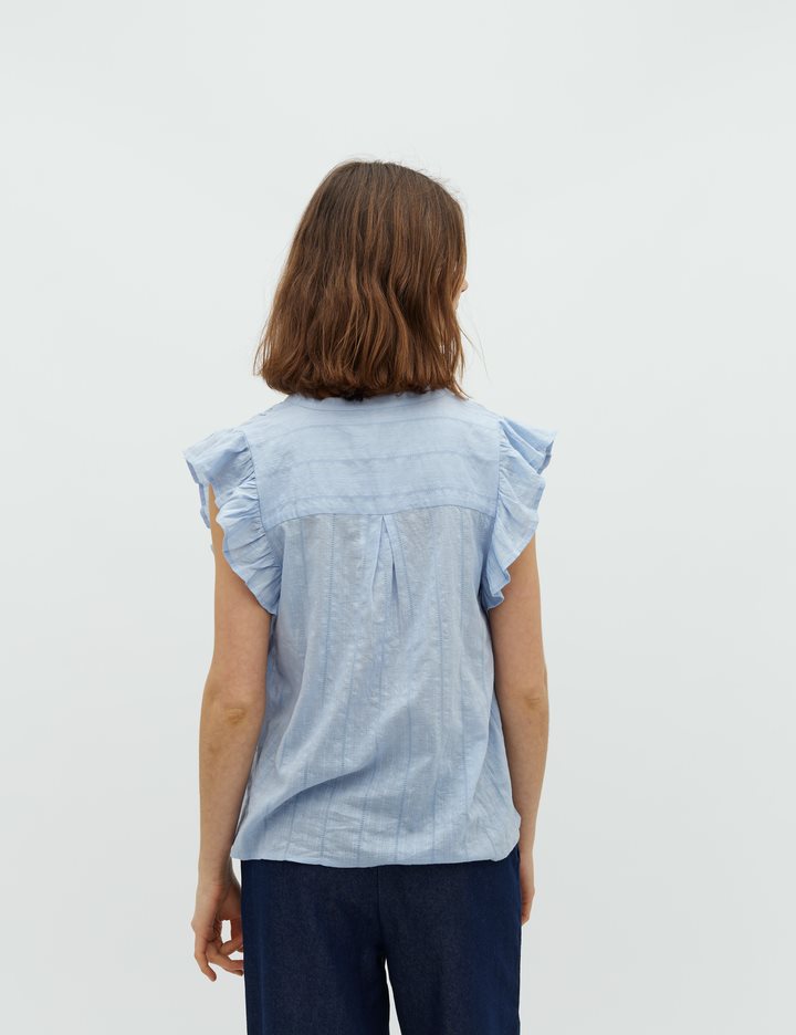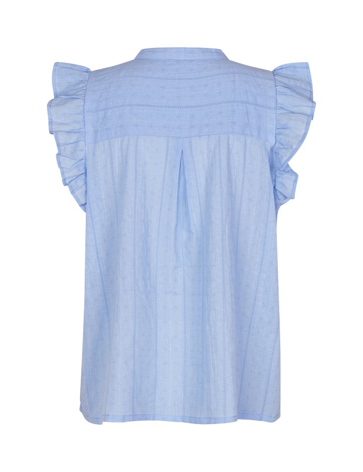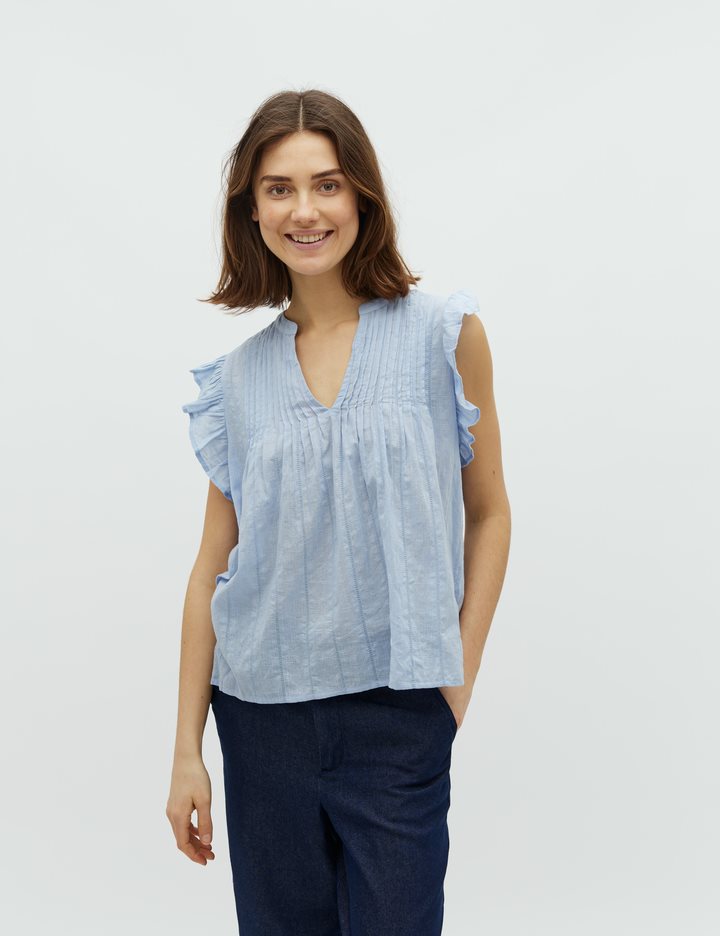 Top with frill details at shoulders.- Material: 100% Cotton- Sleeveless- Round neck with v-neckline- Relaxed fit- Pattern in the fabric- Normal lengthThe height of the model is 175 cm and she is wearing a size S.