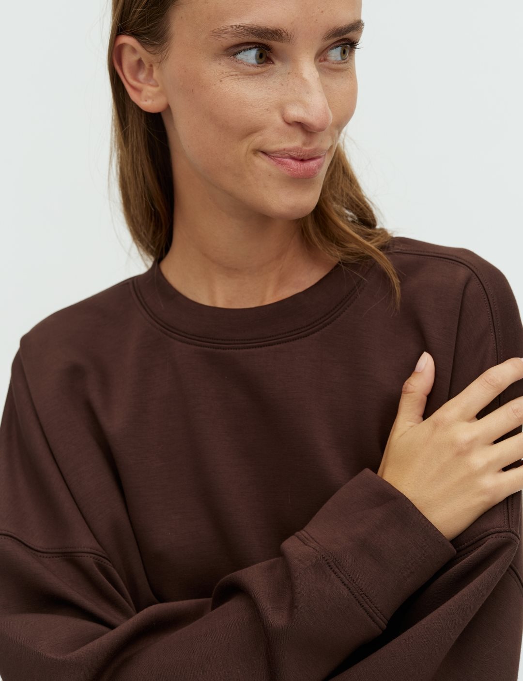 Sweatshirt in soft material.- Material: 55% Viscose, 40% Polyester, 5% Elastane- Loose fit- Soft quality- Round neckline- Long sleeves- Dropped shoulder seamThe model is 176 cm tall and is wearing size S.