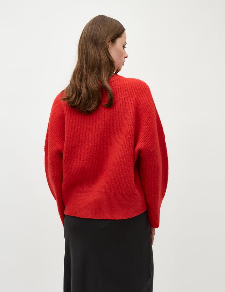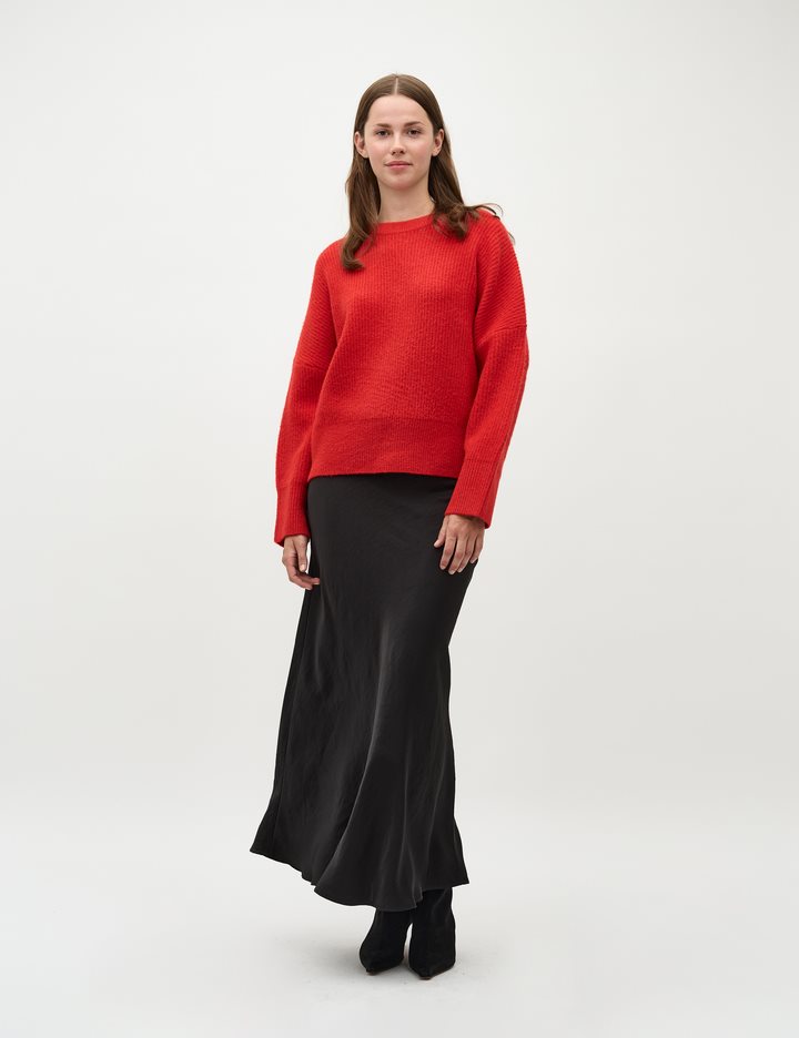 O-neck knit with drop shoulders.- Material: 68% Acrylic, 12% Polyester, 11% Nylon, 6% Wool, 3% Elastane- Long sleeves with drop shoulders- O-neck- Relaxed fit- Normal length- Soft quality- Color: Red Rose