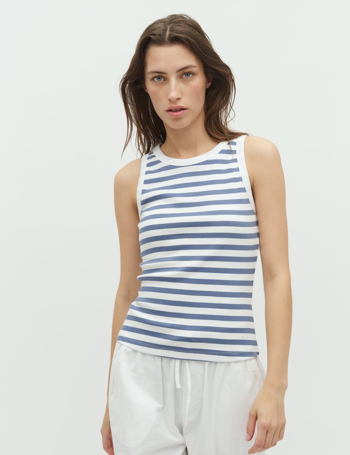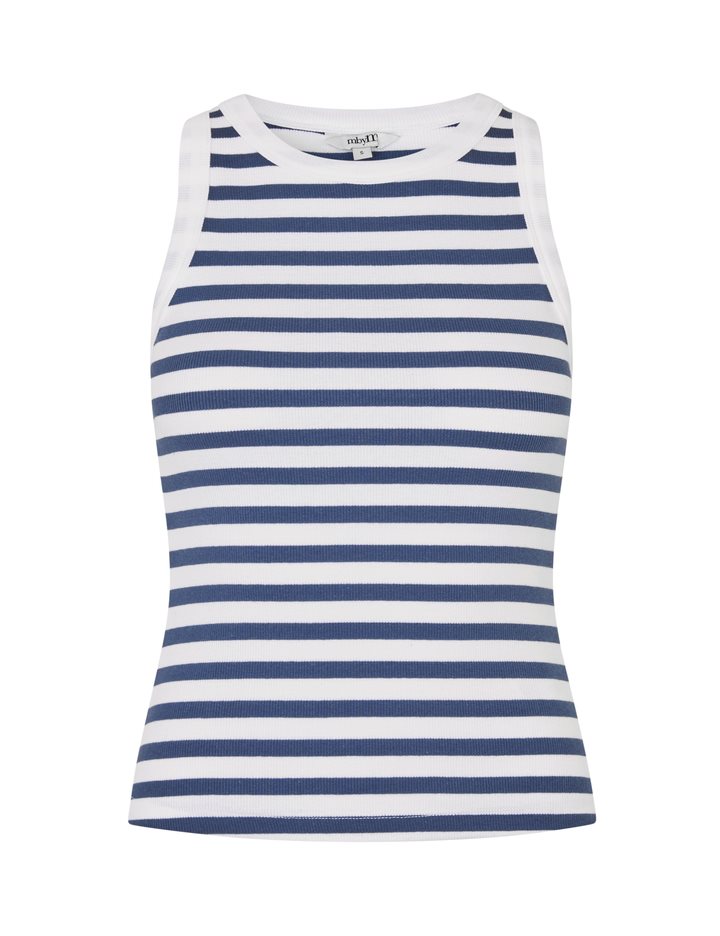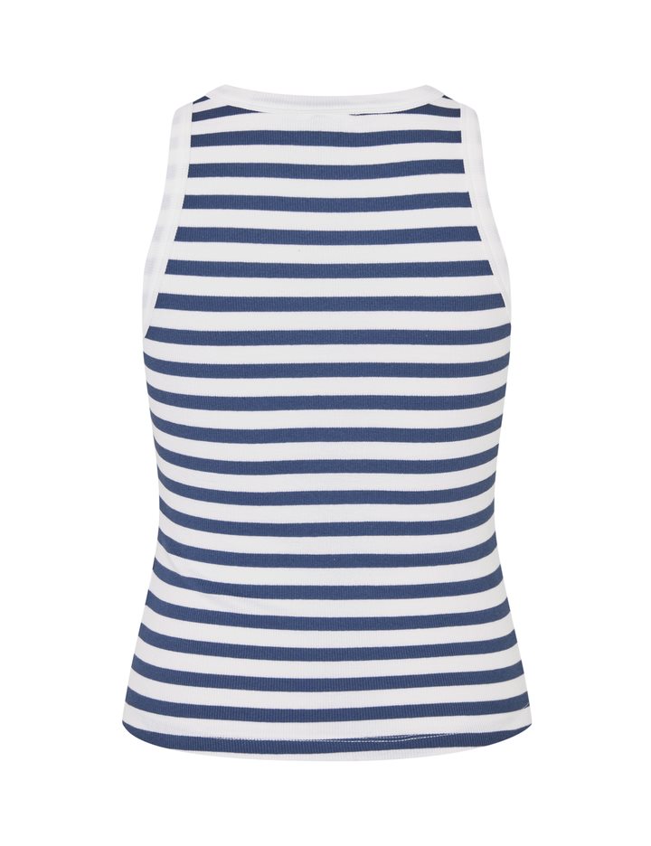 Basic tank top with stripes.- Material: 95% polyester, 5% Elastane- Round neck- Sleeveless- Tight fit- Normal length- Perfect under a blazer