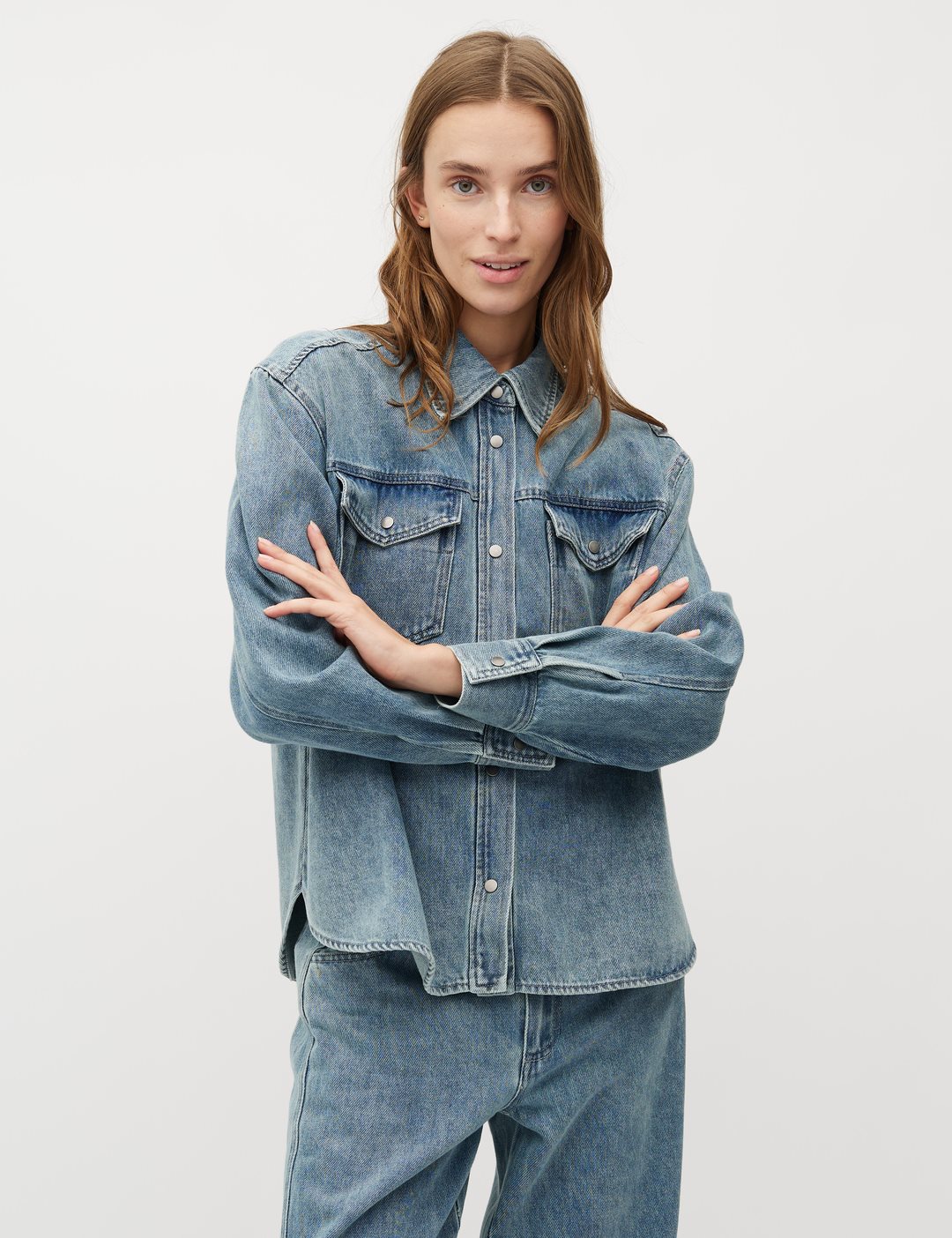 Denim shirt in an authentic look.- Material: 100% Cotton- Shirt collar- Closes with press studs- Chest pockets- Regular fitThe model's height is 176 cm and she is wearing a size S.