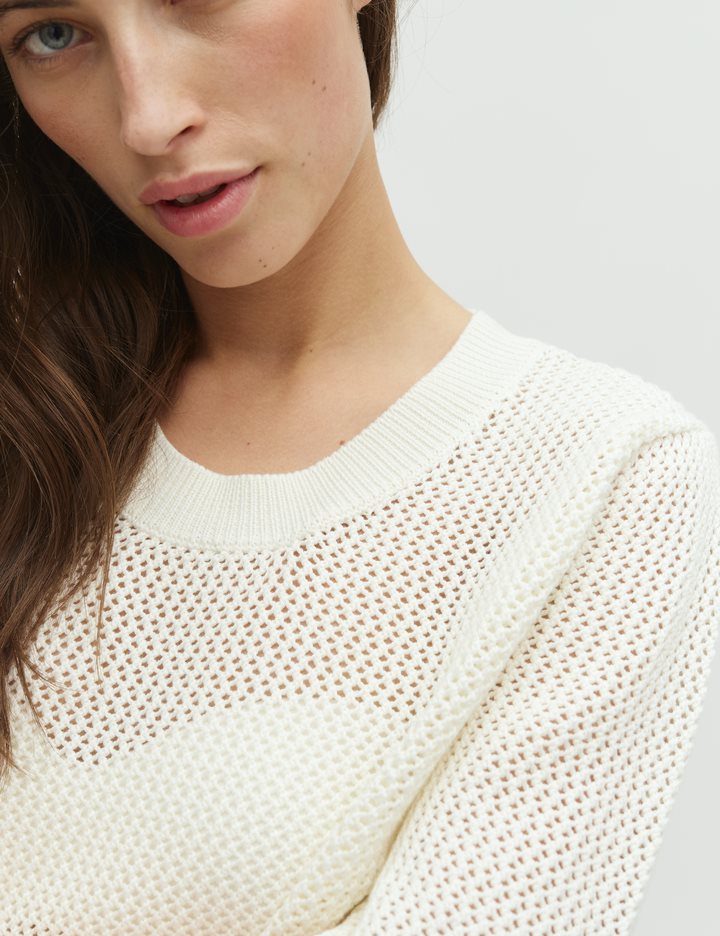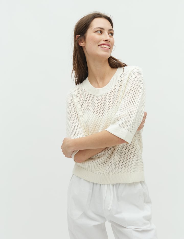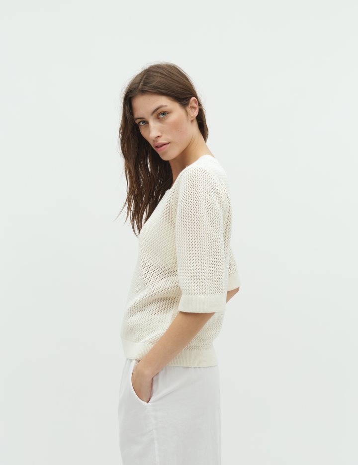 Knitted sweater with round neckline.- Material: 100% Cotton- Short sleeves- Normal length- Normal fit- Colour: Sugar
