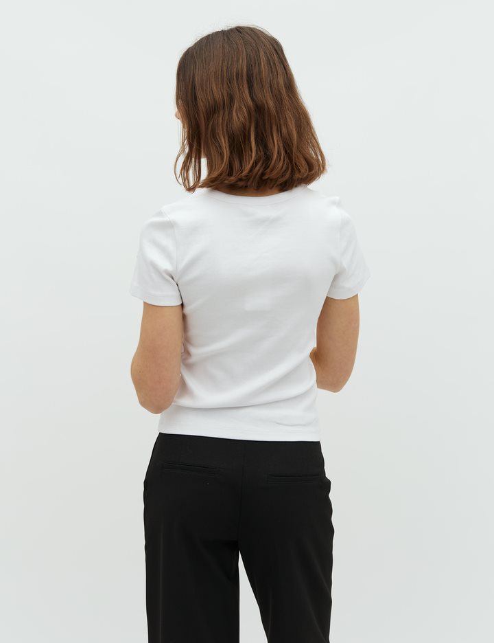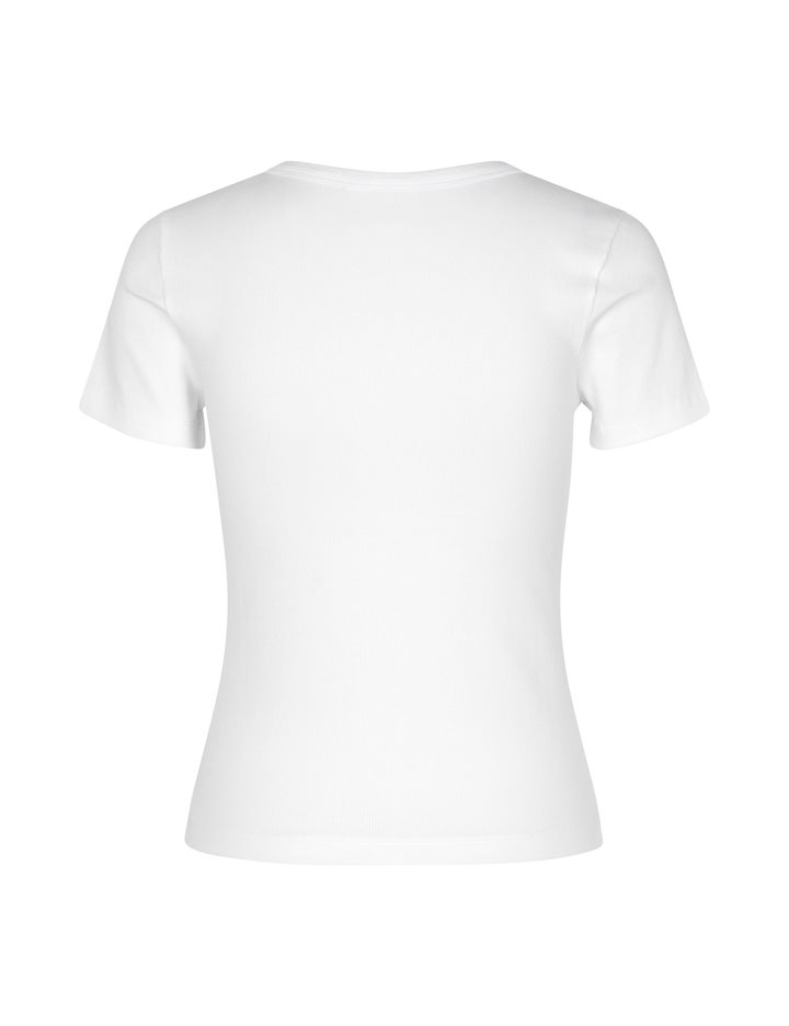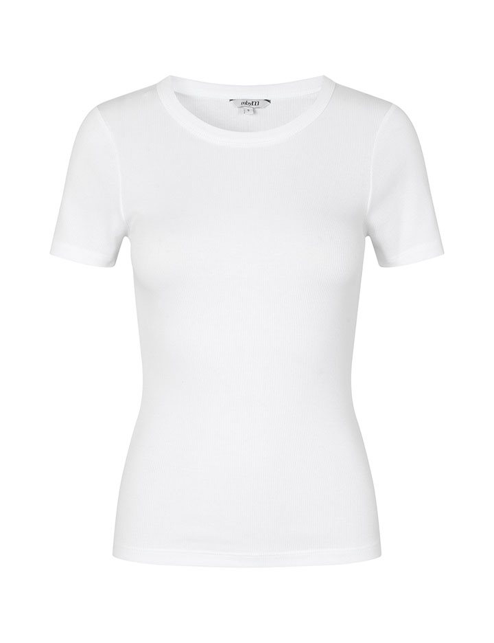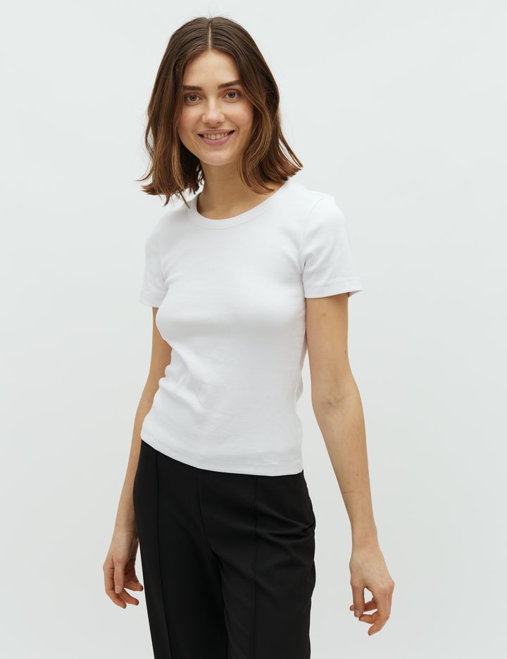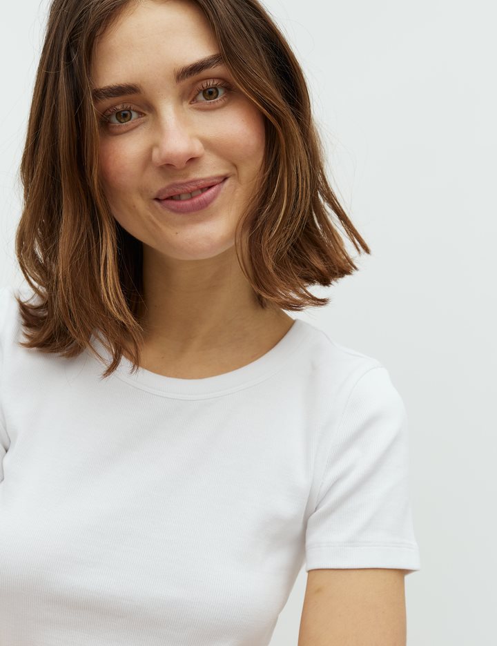 Simple t-shirt in a ribbed quality- Material: 95% Cotton, 5% Elastane- Round neckline- Short sleeves- Tight fitting- Rib quality- Color: White