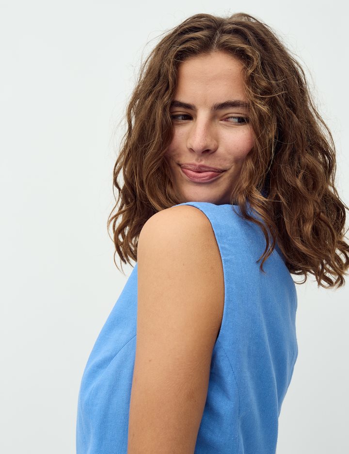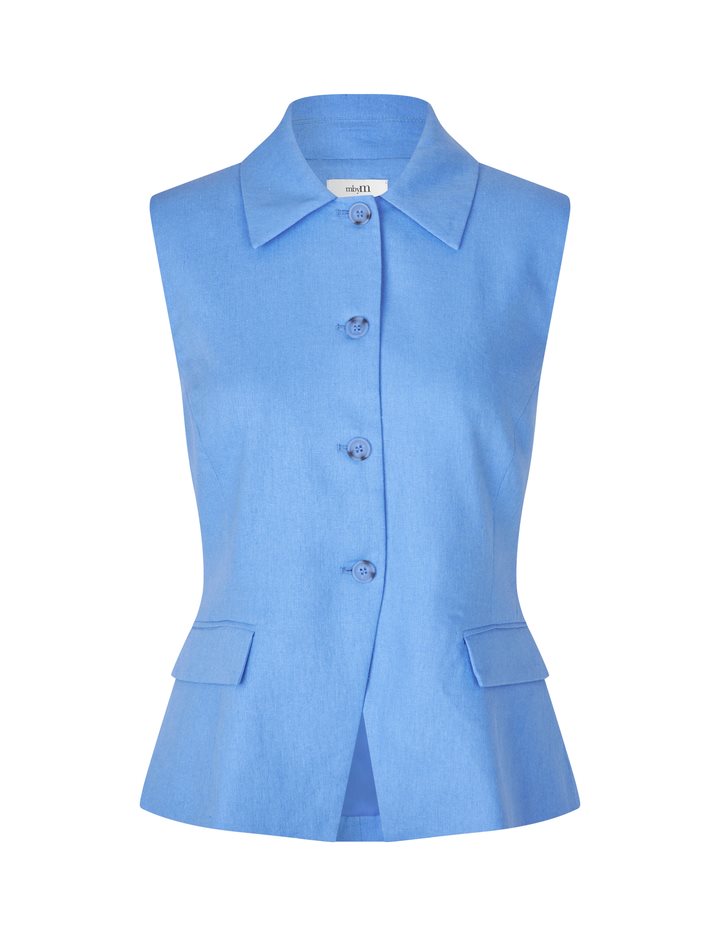 Vest with buttons.- Material: 55% Linen, 45% Viscose- Shirt collar- Closes with buttons- Figure-shaped- Pockets on the frontThe model's height is 176 cm and she is wearing a size S.