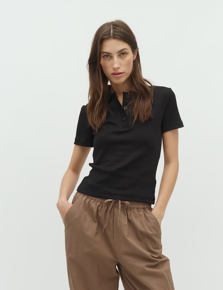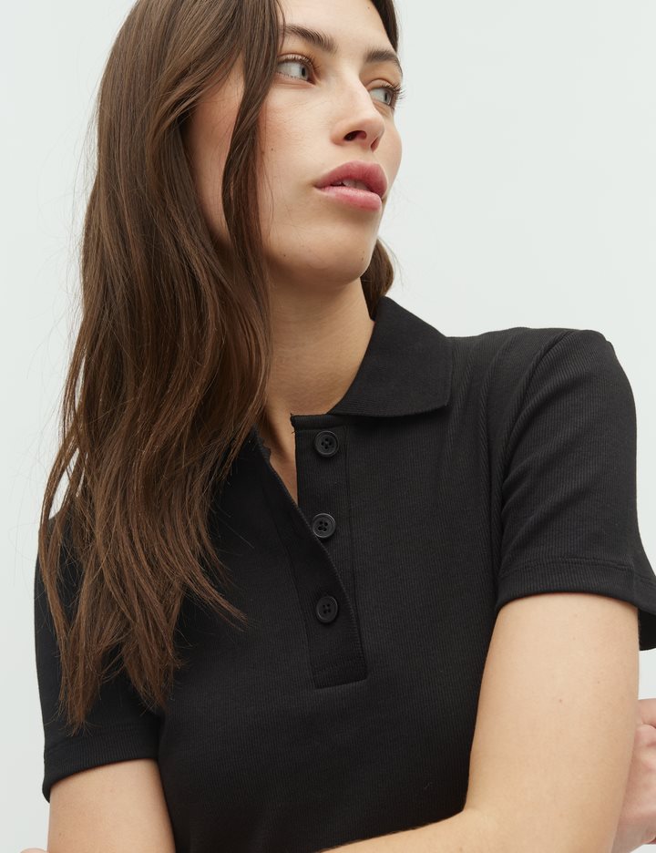 Short sleeve polo.- Material: 95% Cotton, 5% Elastane- Short sleeves- Buttons at the front- Tight fit- Regular length