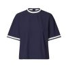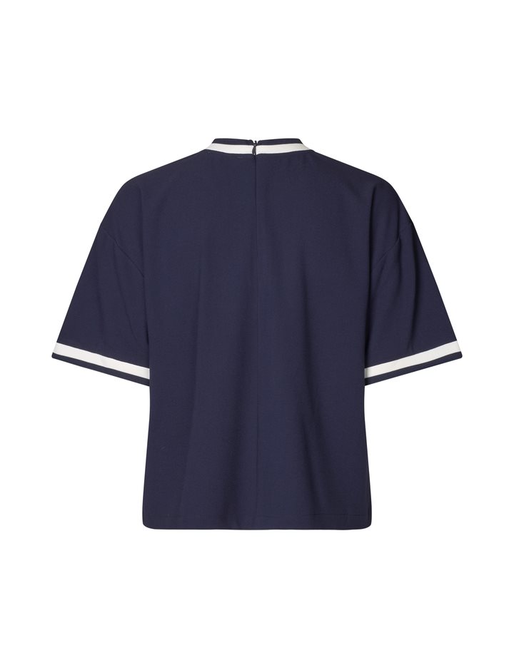 Loose t-shirt with short sleeves.- Material: 60% Polyester. 35% Viscose, 5% Elastane- Loose fit- Short length- Closes with zipper in the back- Round neck- Short sleevesThe model's height is 176 cm and she is wearing size S.