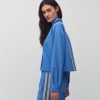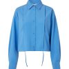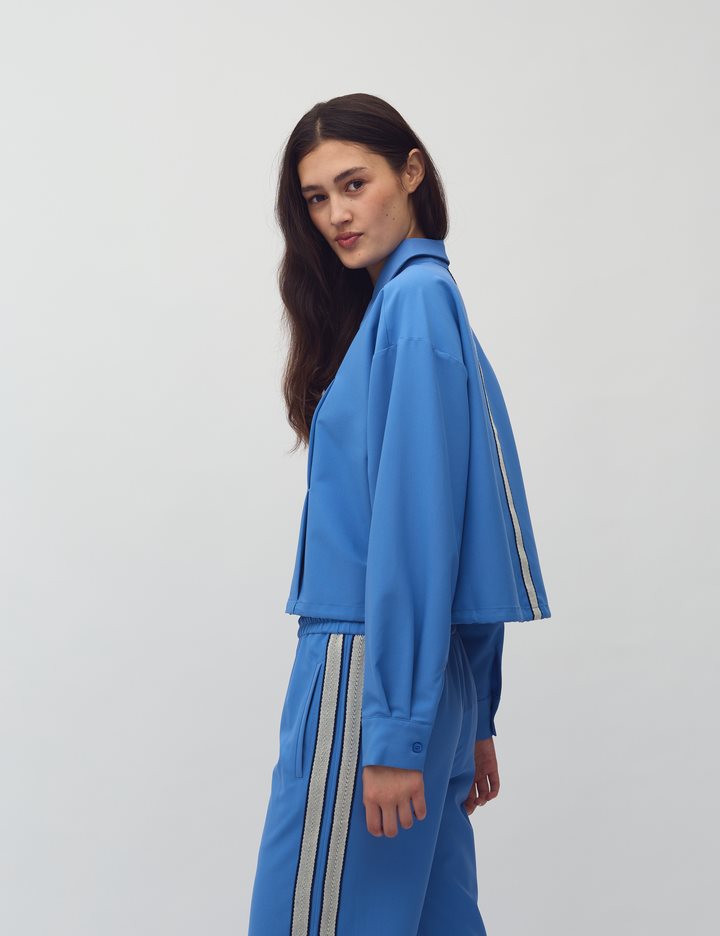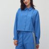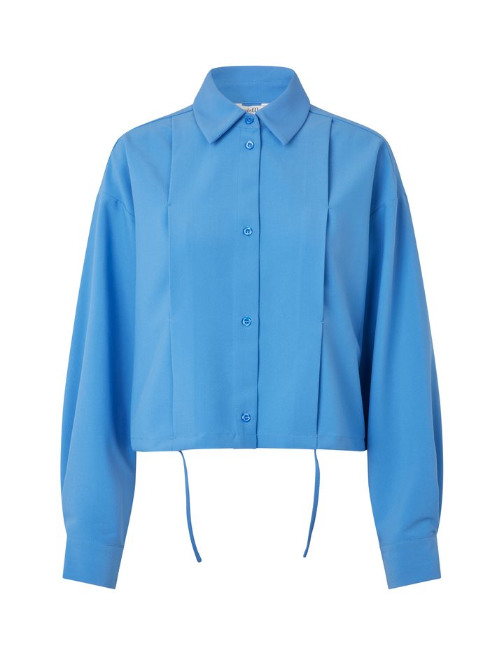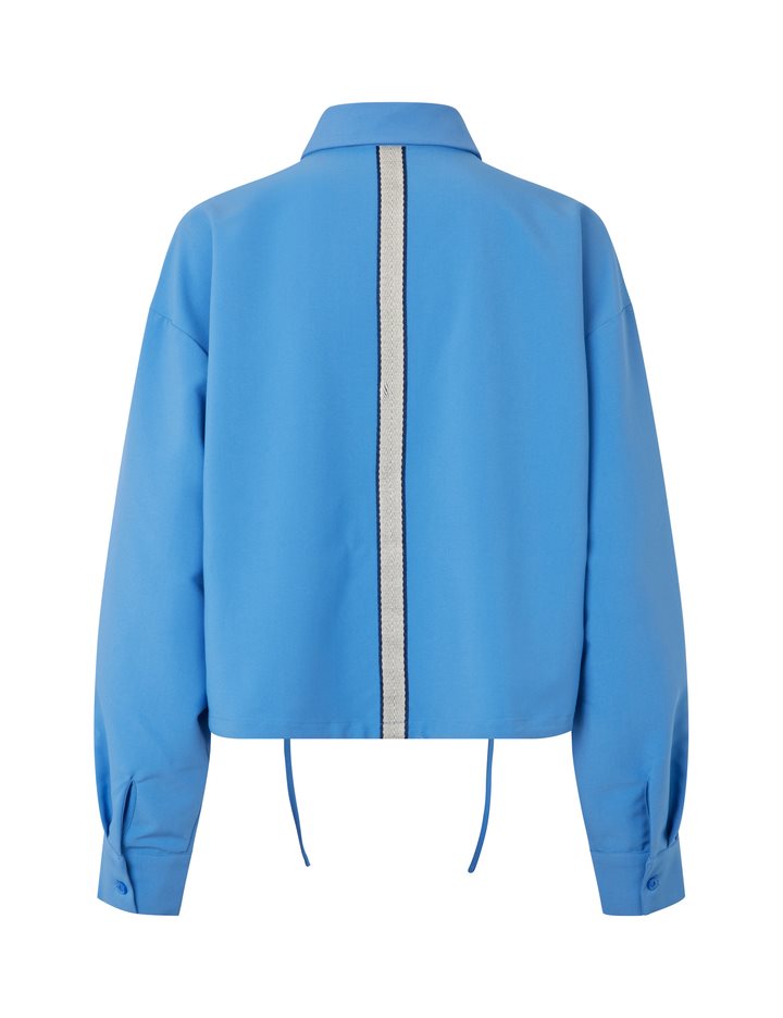 Shirt blouse in athleisure look.- Material: 75% Polyester, 20% Viscose, 5% Elastane- Long sleeves with button cuffs- Shirt collar- Stripe on the back- Boxy, loose fit- Short length- Pleated details at the front- Ties at the bottomThe model's height is 176 cm and she is wearing a size S.